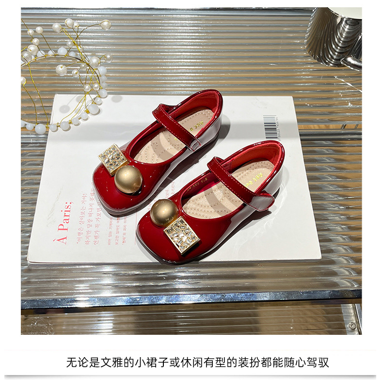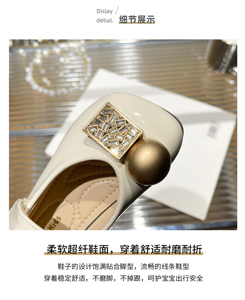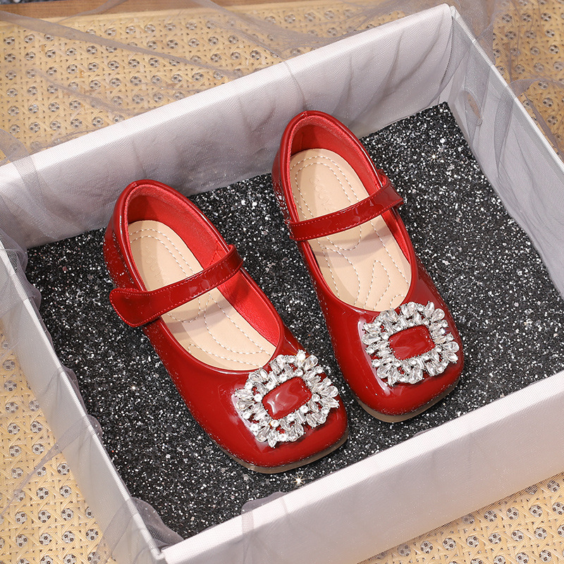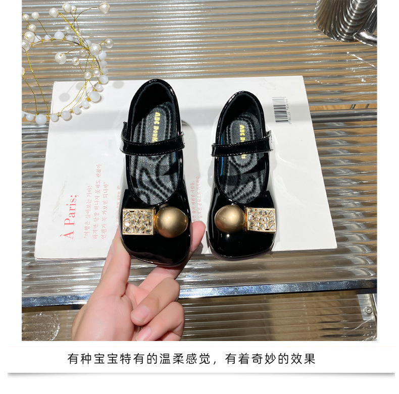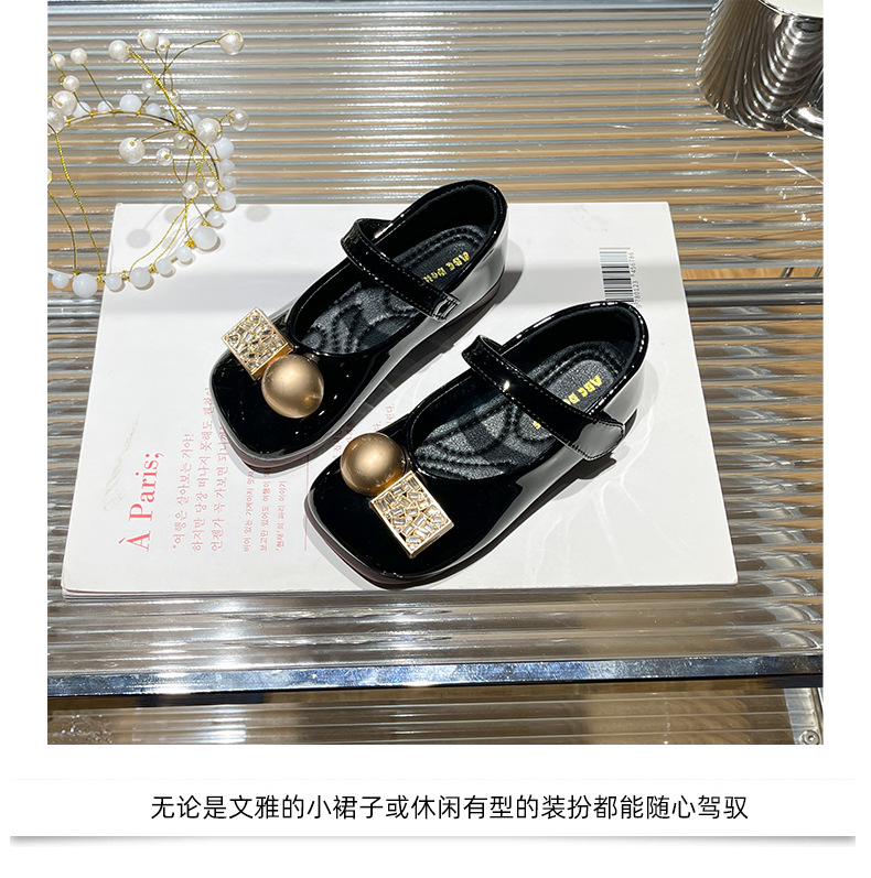 女の子用プリンセスシューズ 2025年春秋新作 子供用ネット人気ラインストーンシューズ 女の子用黒革靴 子供靴