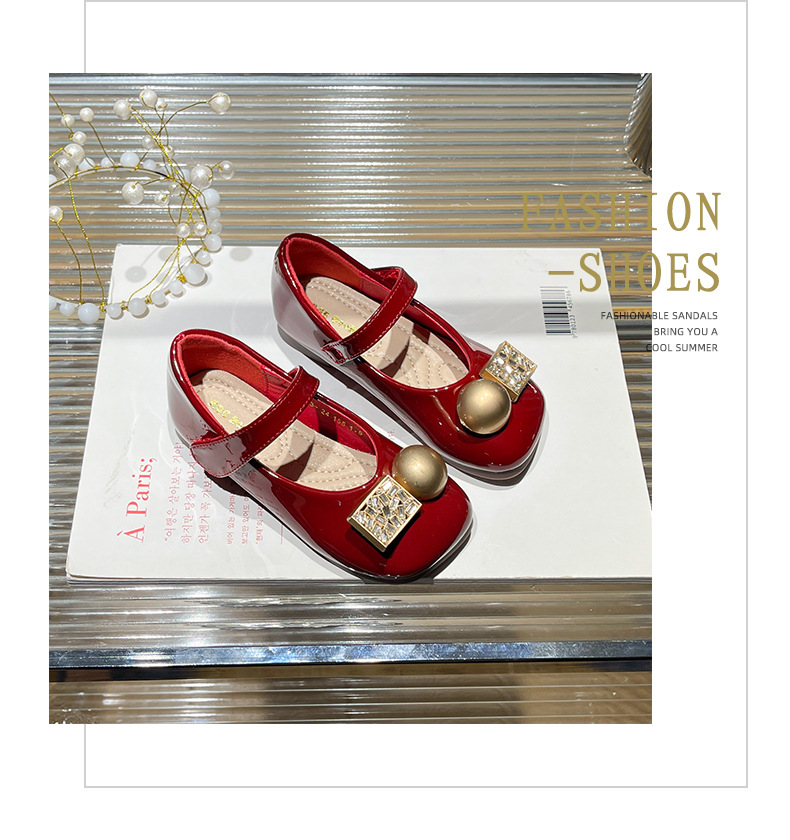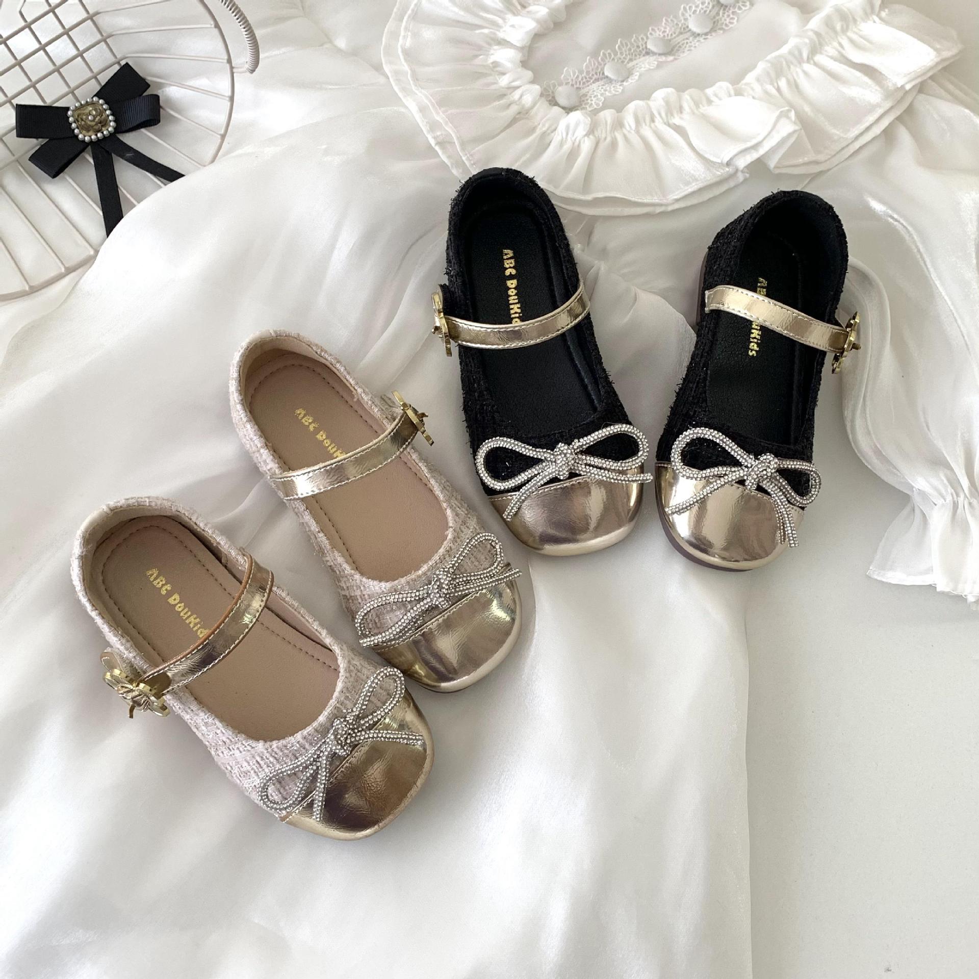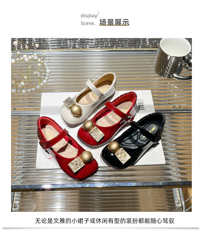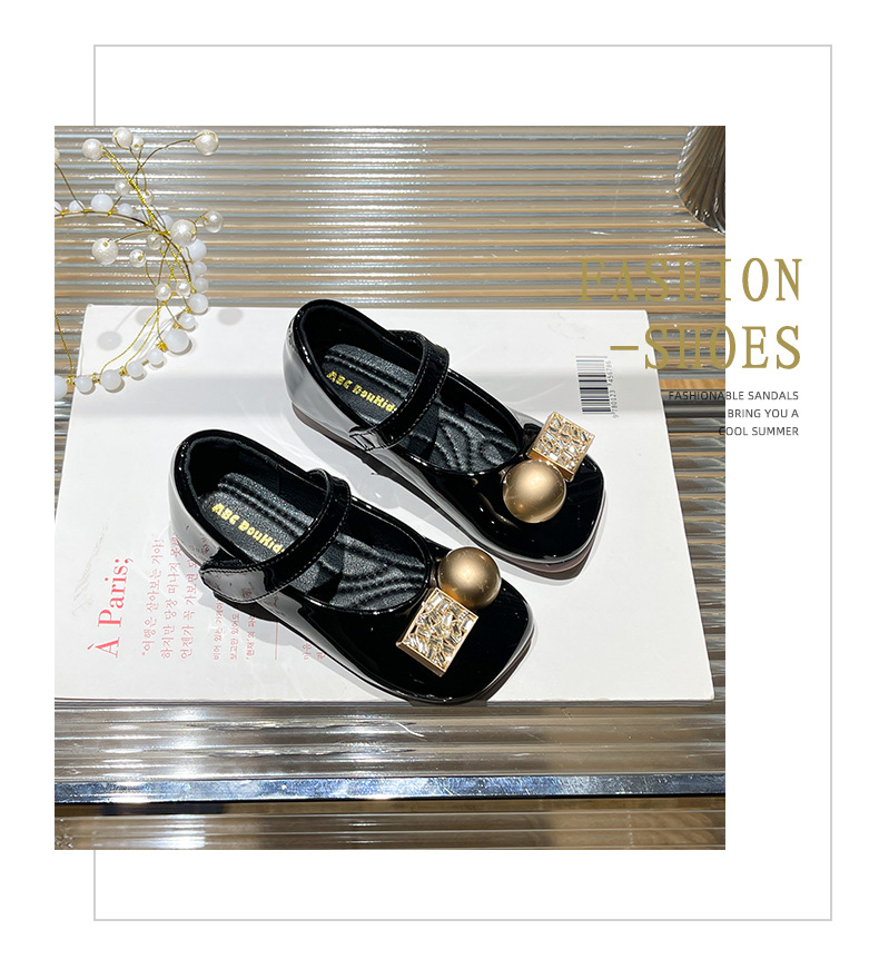 女の子用プリンセスシューズ 2025年春秋新作 子供用ネット人気ラインストーンシューズ 女の子用黒革靴 子供靴