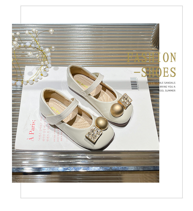 女の子プリンセスシューズ 2025 新しいスタイルの小さな香りの菱形パール子供靴ソフトソール小さな革靴多用途ファッション靴