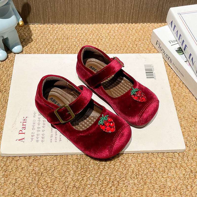 女童小皮鞋2025秋冬新款儿童卡通水果公主鞋小女孩复古绒面软底鞋