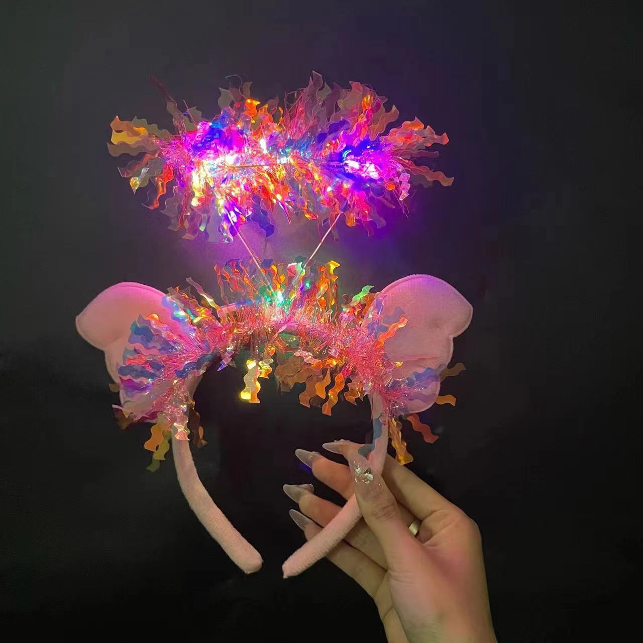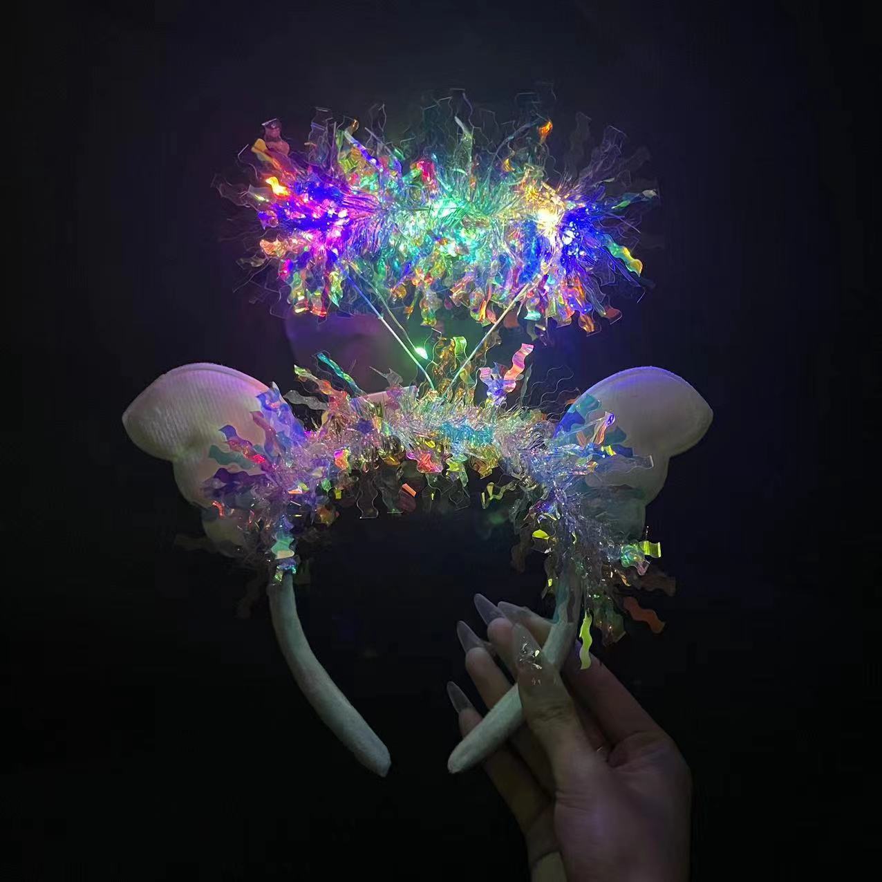 クロスボーダー卸売新型森系ヘッドバンドクリスマス蝶大鹿角頭飾り夜市発光カチューシャ露店玩具