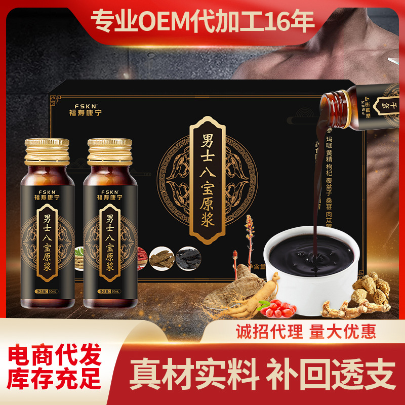 八宝ピューレ、高麗人参、ロバエラム、桑、オウギ、山芋、ネギの種、肉茎、紅クコ、男性用経口液