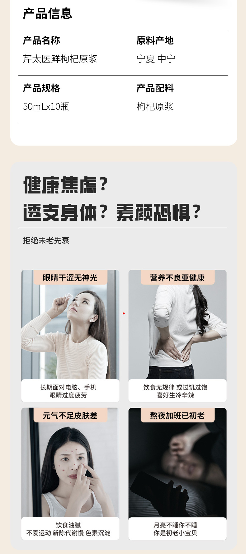 【芹太医】クコ原パルプNFCクコ原汁寧夏中寧新鮮クコ汁50mL * 10本/卸売り