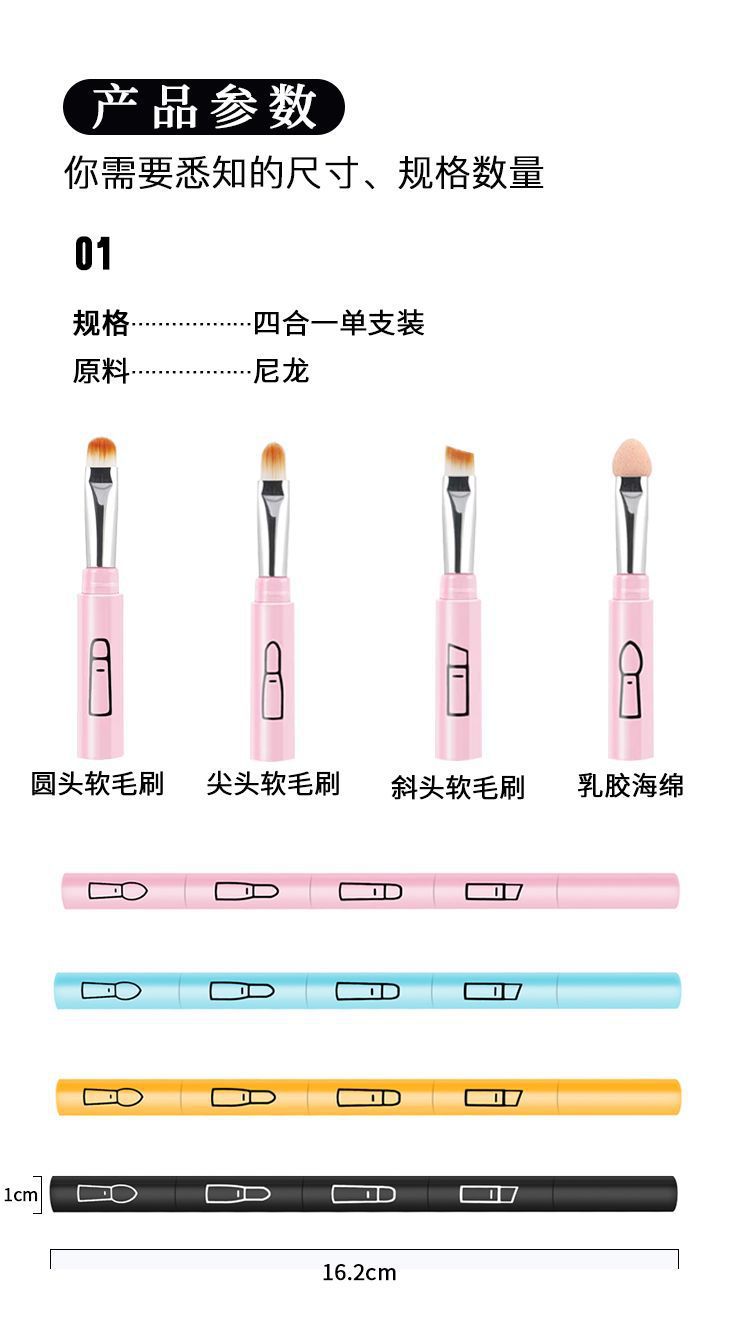 四合一携帯化粧ブラシ旅行セットブラシはミニアイシャドーブラシ眉毛ブラシアイラインブラシマスカラブラシの現物を分割できます。