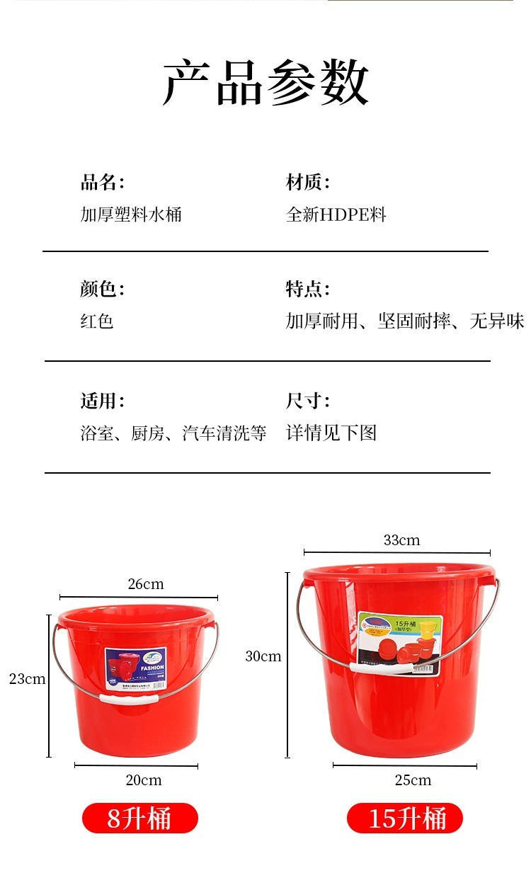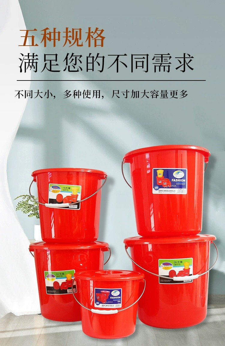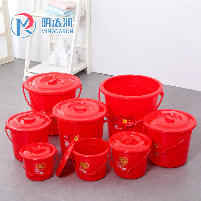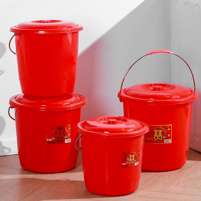特厚バケツ祝い事赤バケツ家庭用プラスチックバケツ学生寮風呂バケツ大サイズ貯水バケツ卸売り赤バケツ