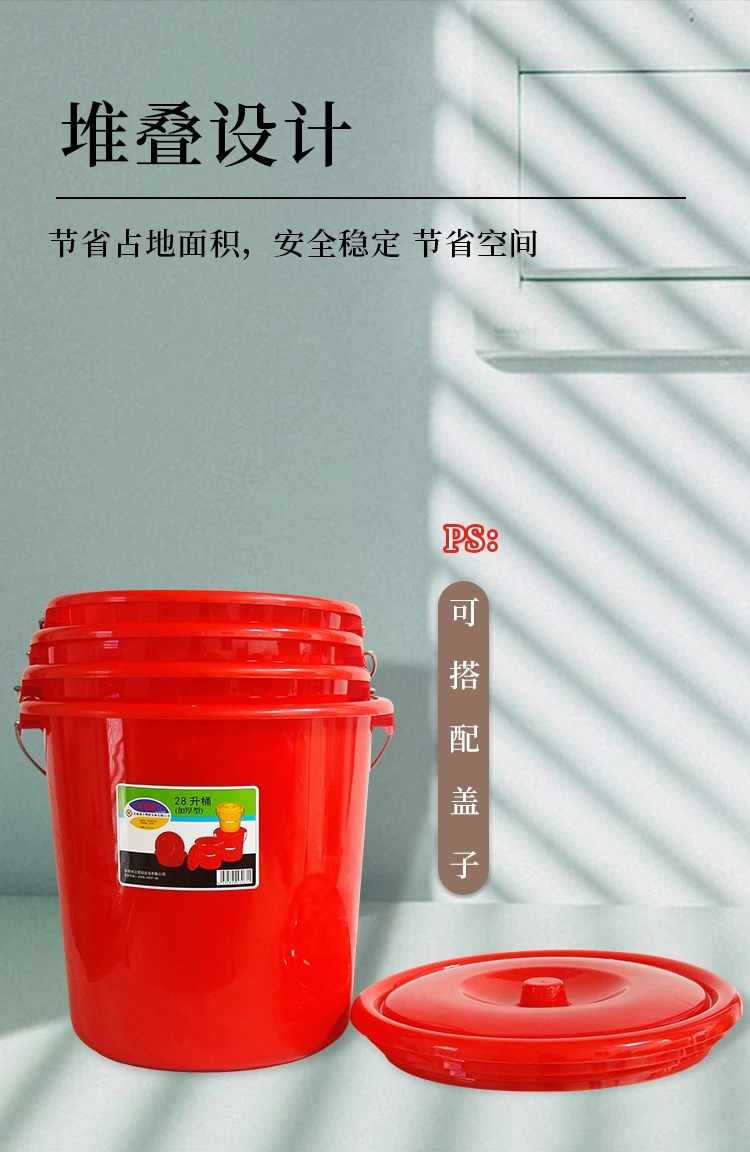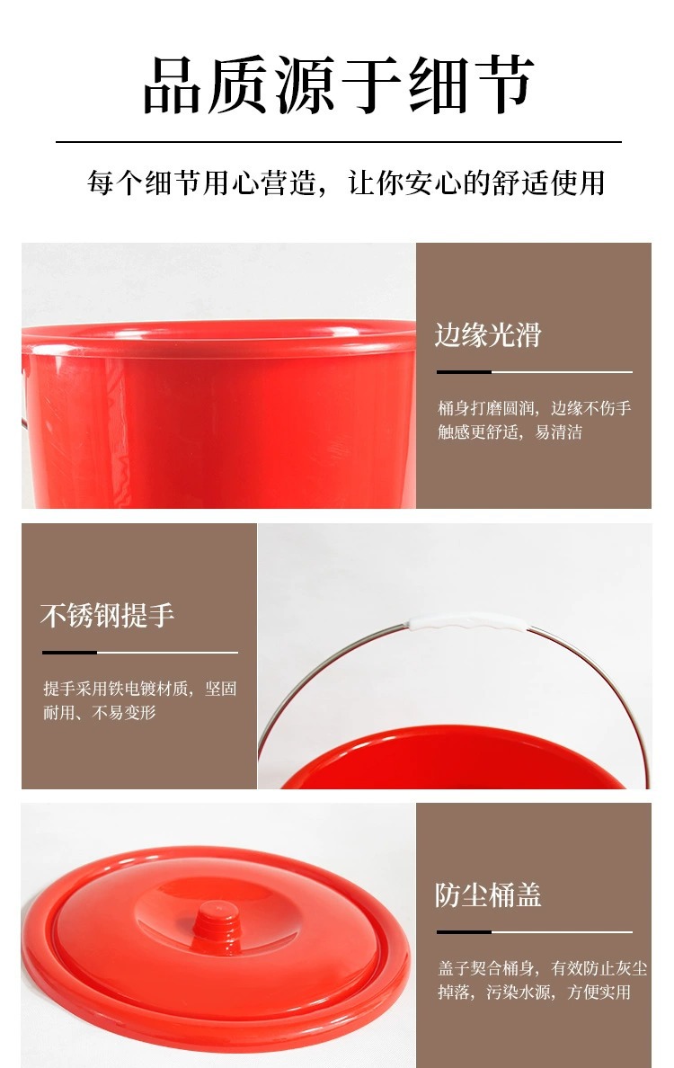 带盖塑料小水桶家用加厚手提桶洗车清洁桶熟胶红色喜庆储水桶圆桶
