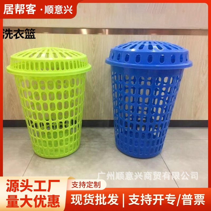 家庭用の大きいサイズの透かし彫りの洗濯かごのプラスチックの洗濯かごの浴室の収納かごの洗濯物の収納かごの蓋付き洗濯かご