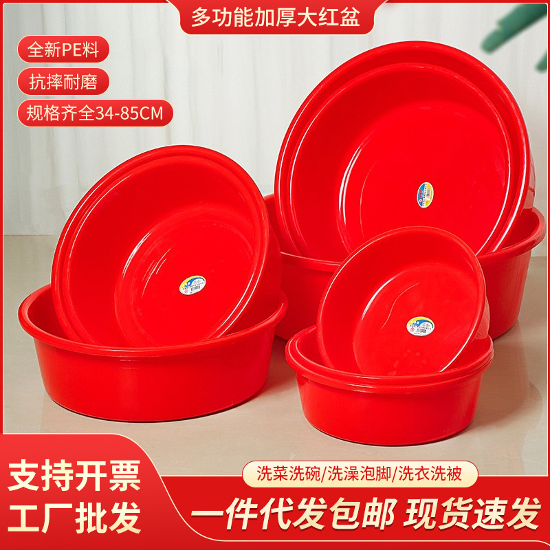 珠江の赤いたらいは厚いプラスチックのたらいの家庭用の洗面器の野菜のたらいの大きいサイズの成人の子供のたらいの熟しているゴムの風呂のたらいを洗います。