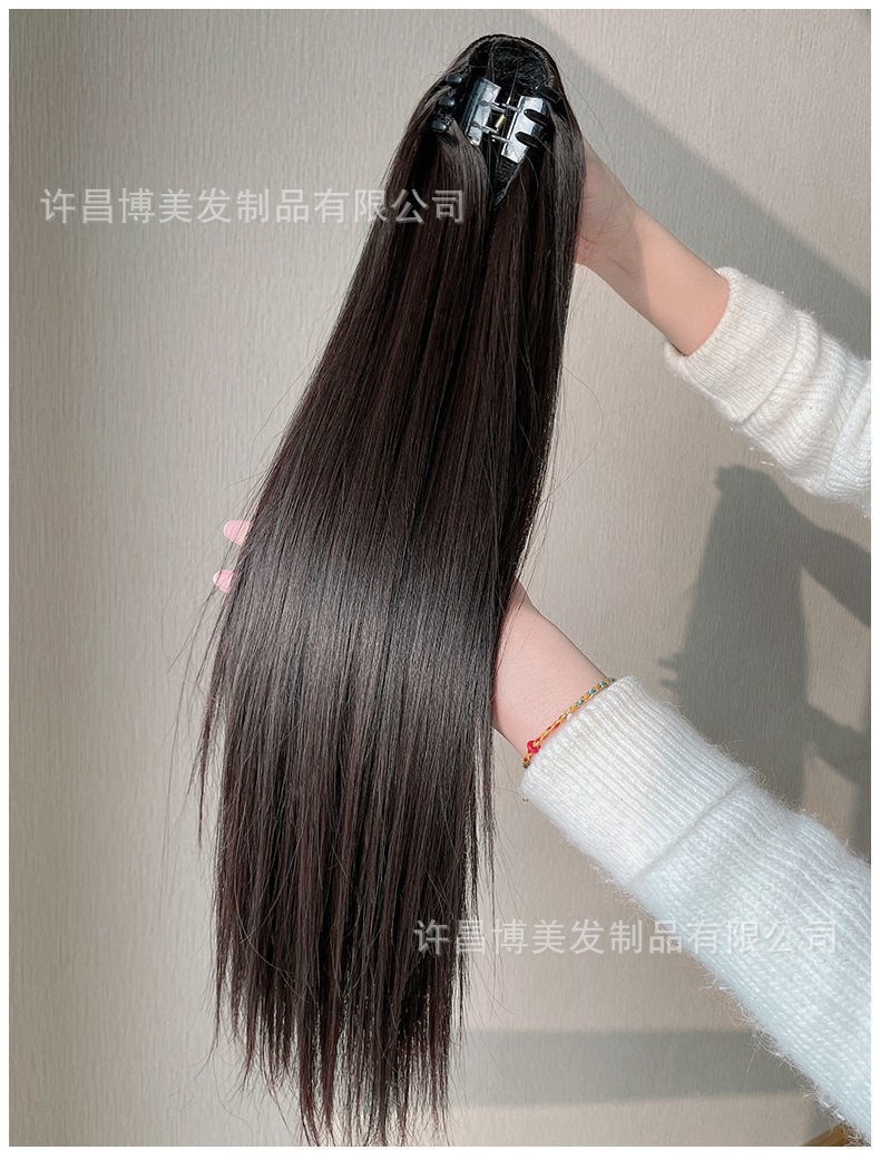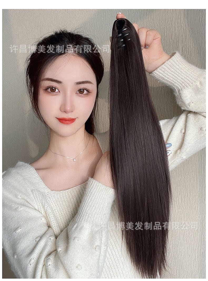 长编みポニーテールヘアピース高温ヤキふんわりストレートヘア巻き式ヘアピース80cm新品
