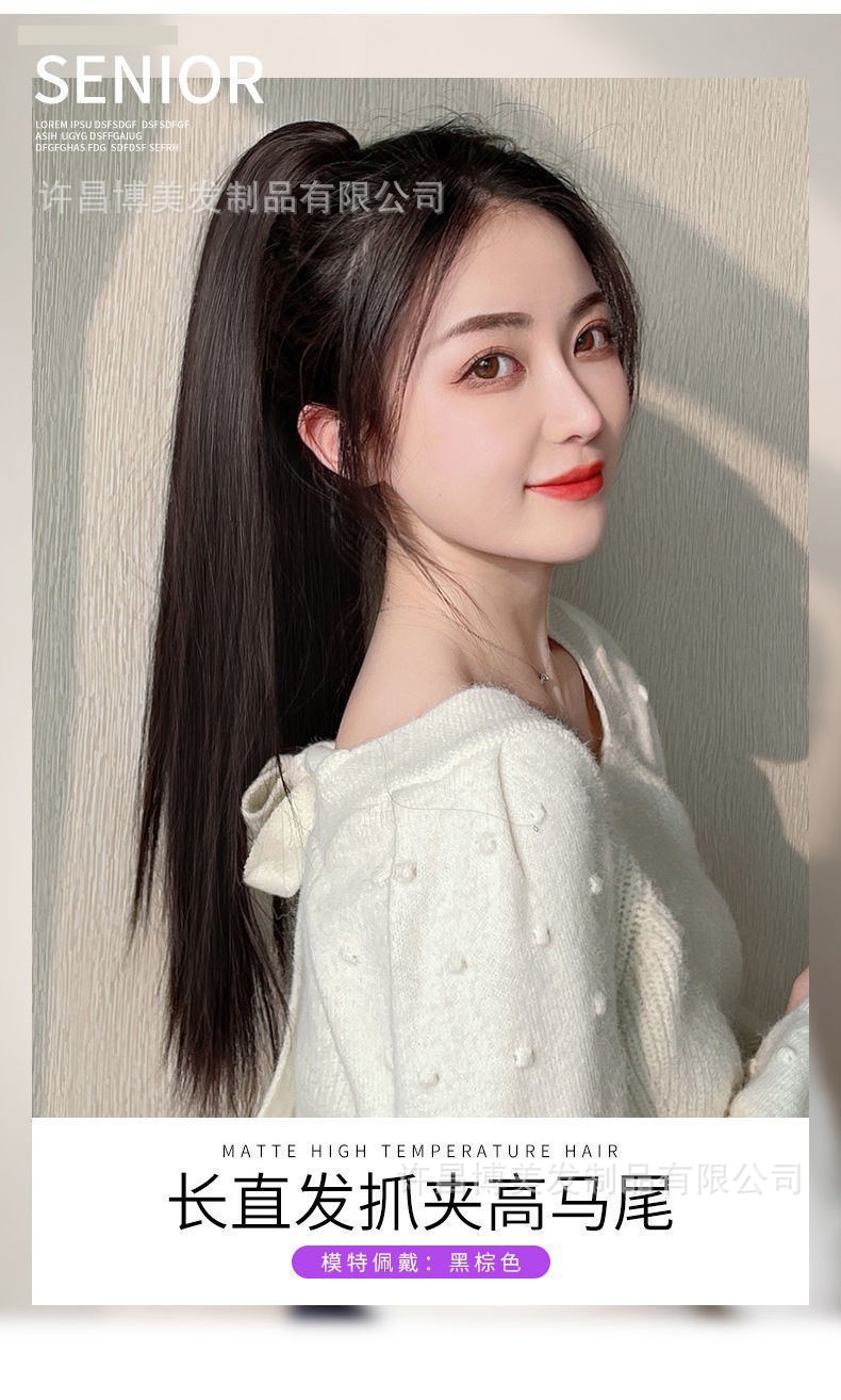 クロスボーダー熱売60/80cmロングストレートかつらポニーテール髪高温糸偽お下げはポニーテールの現物を編むことができる