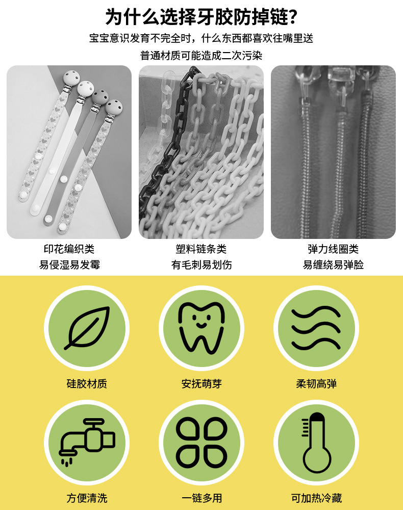 硅胶防掉链牙胶链子婴儿磨牙棒玩具防丢绳咬咬胶乐宝宝安抚奶嘴链