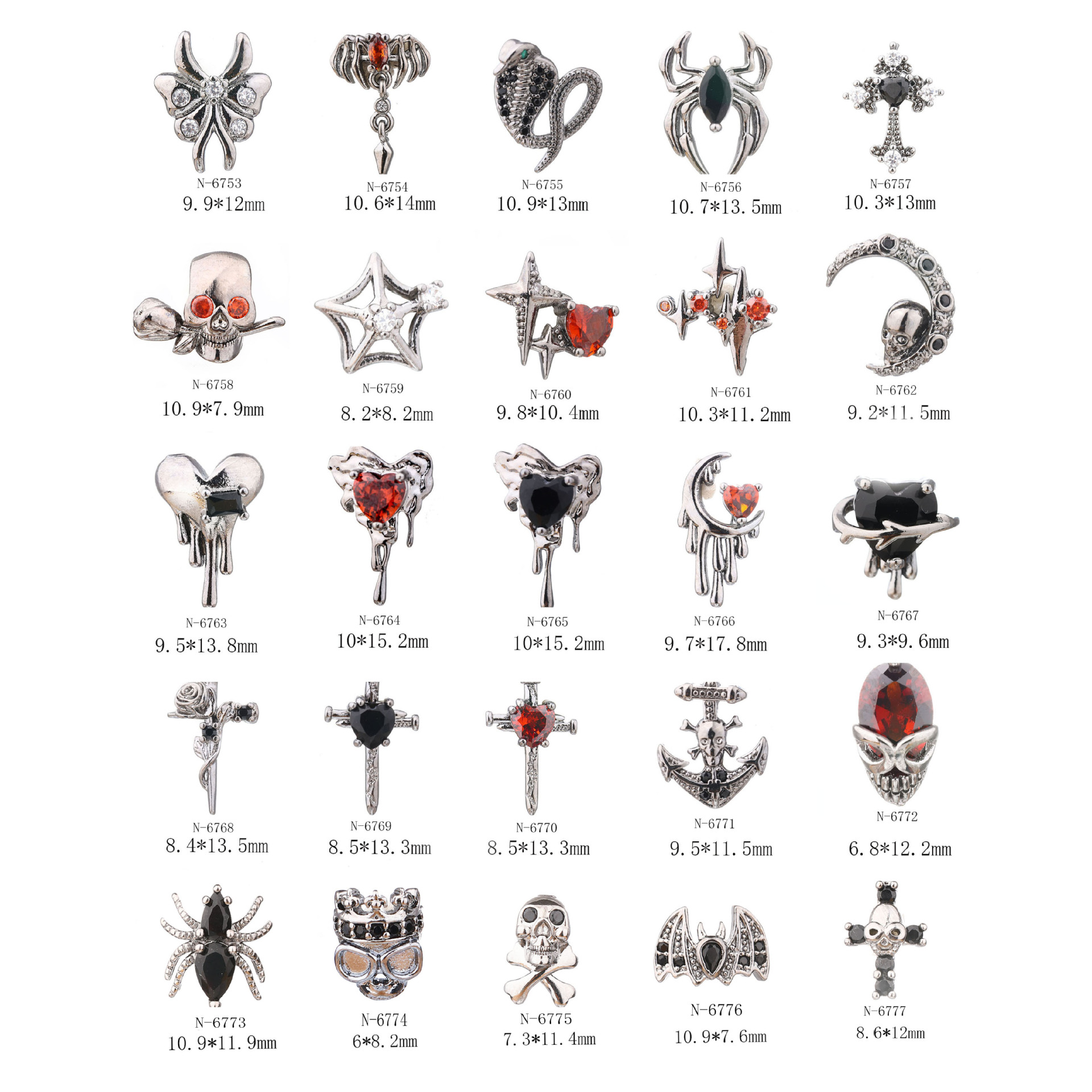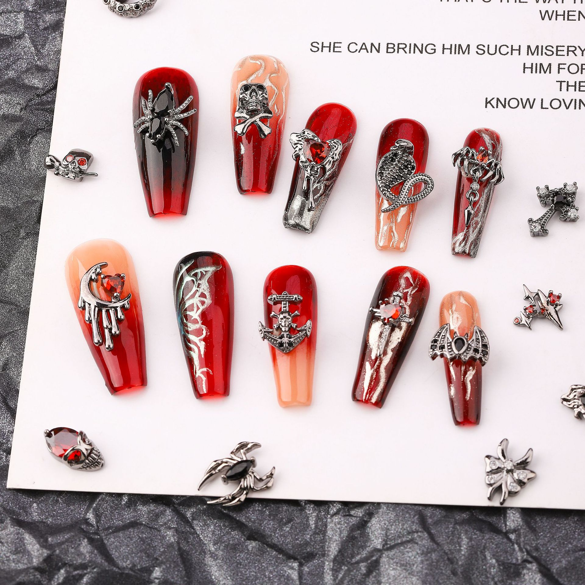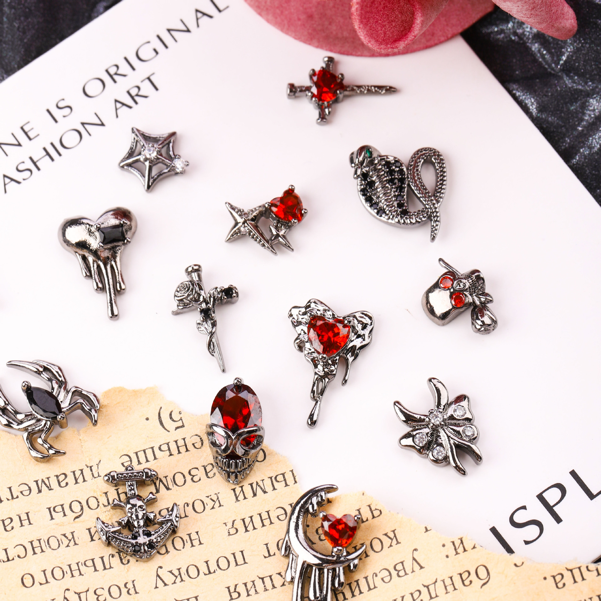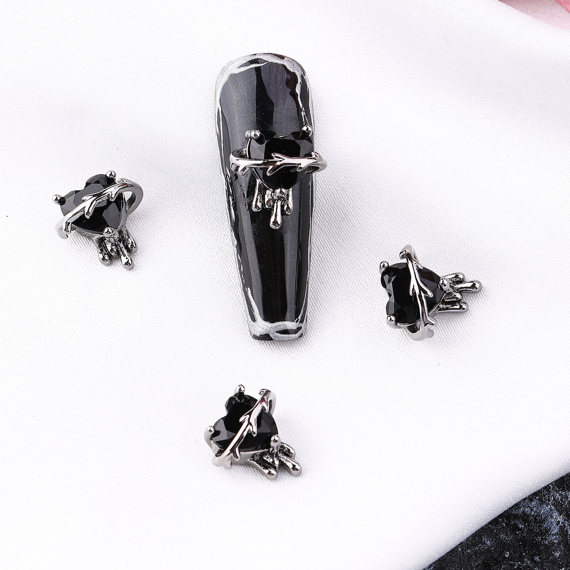 ハロウィンネイルアート クロウハート レトロクロス メタル銅製ジルコンハート スカルネイル ウェアラブルネイルアクセサリー