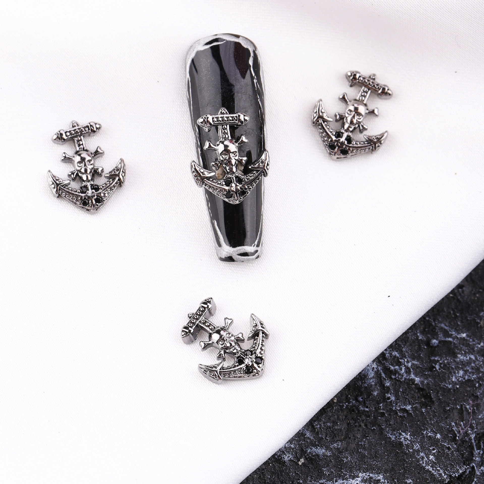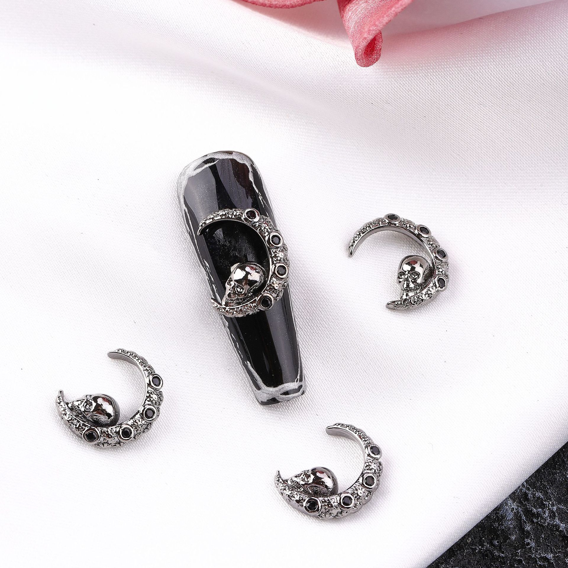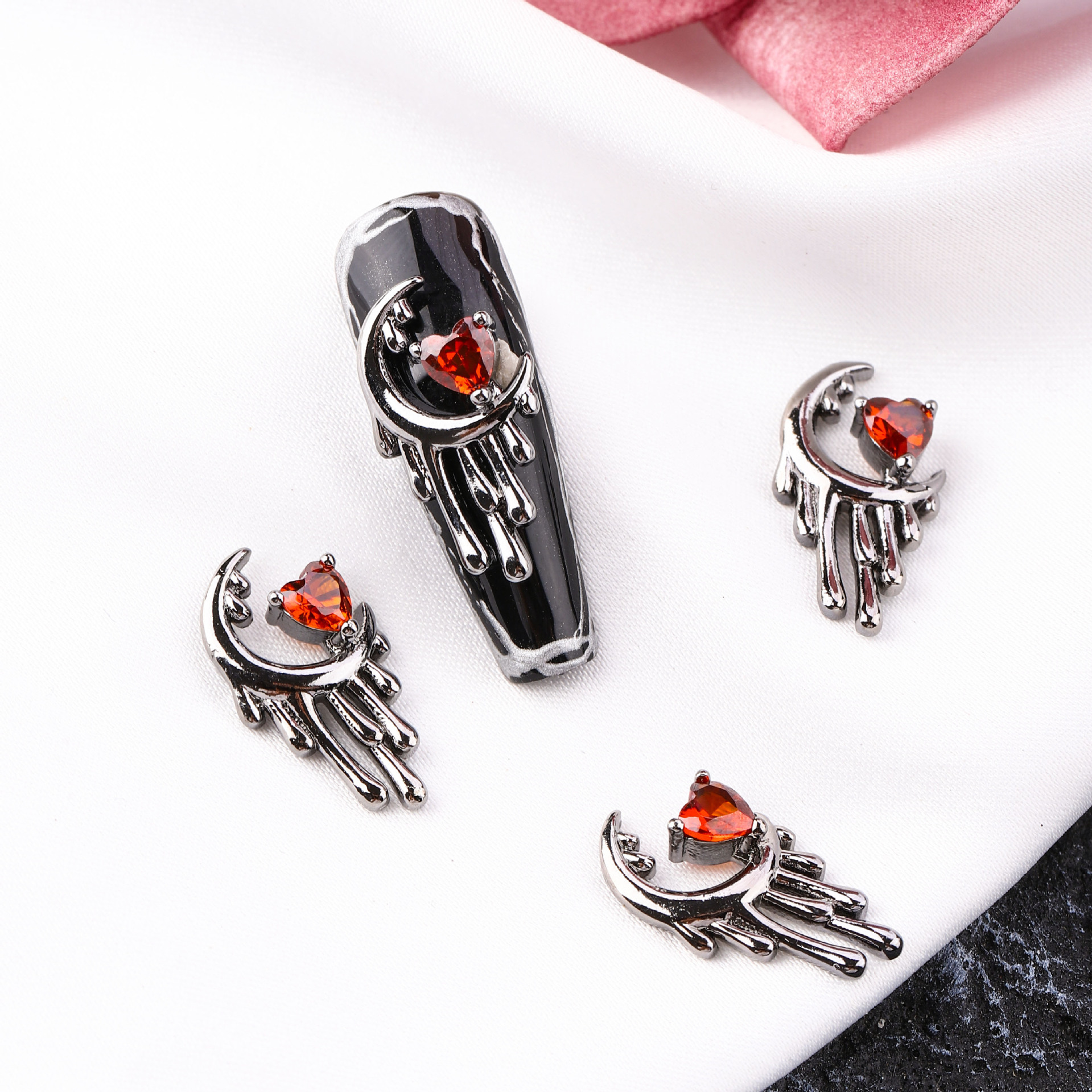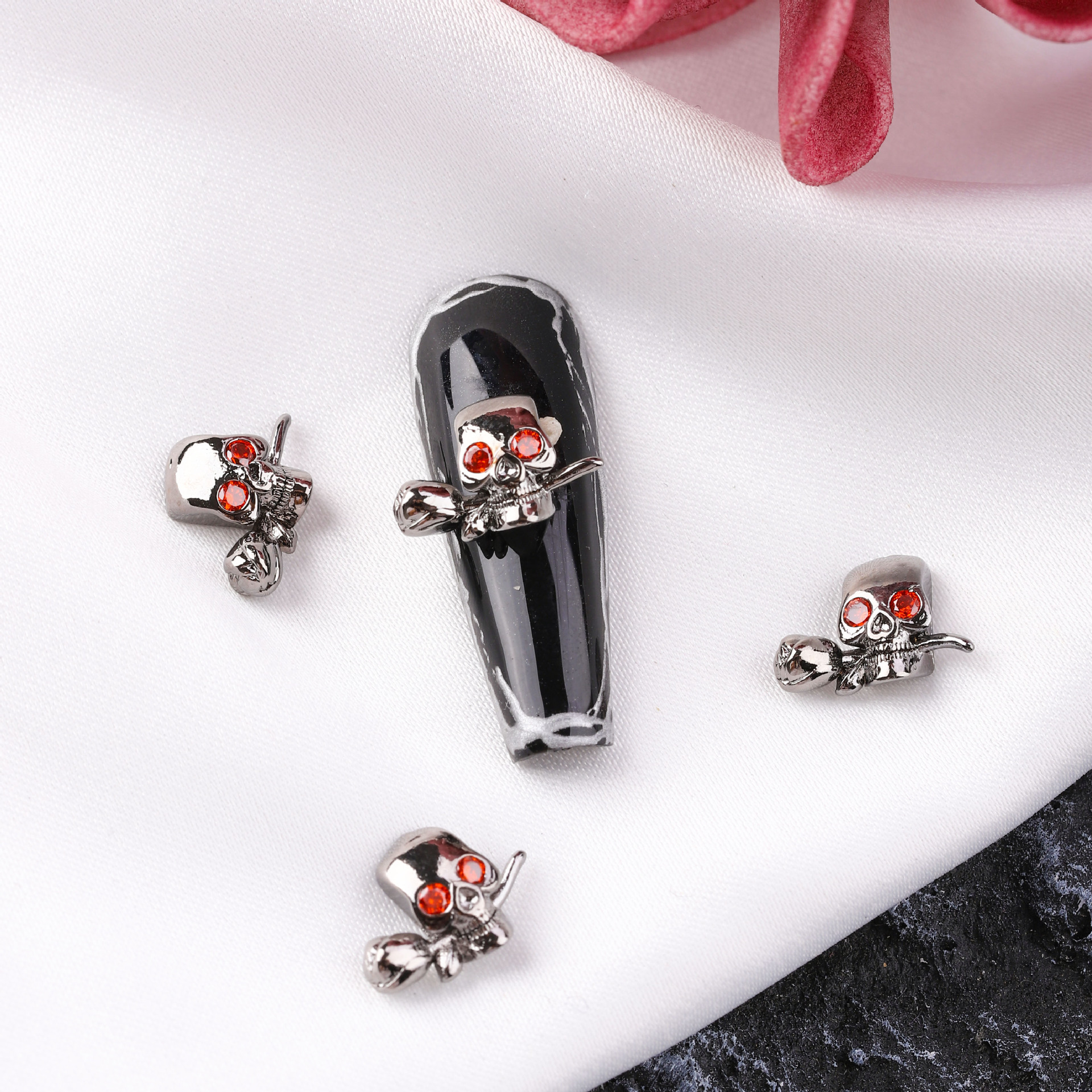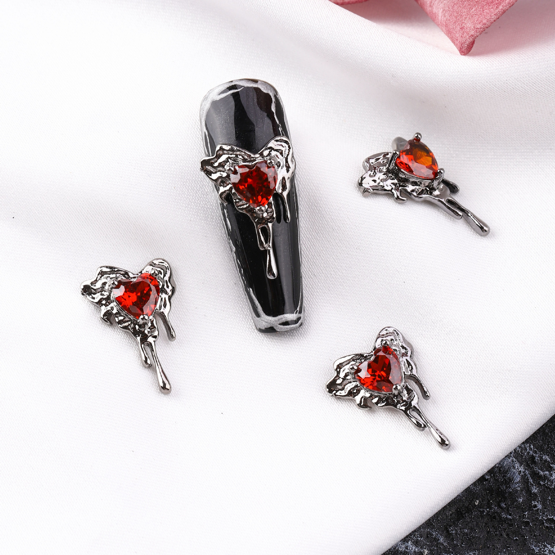 ハロウィンネイルアート クロウハート レトロクロス メタル銅製ジルコンハート スカルネイル ウェアラブルネイルアクセサリー