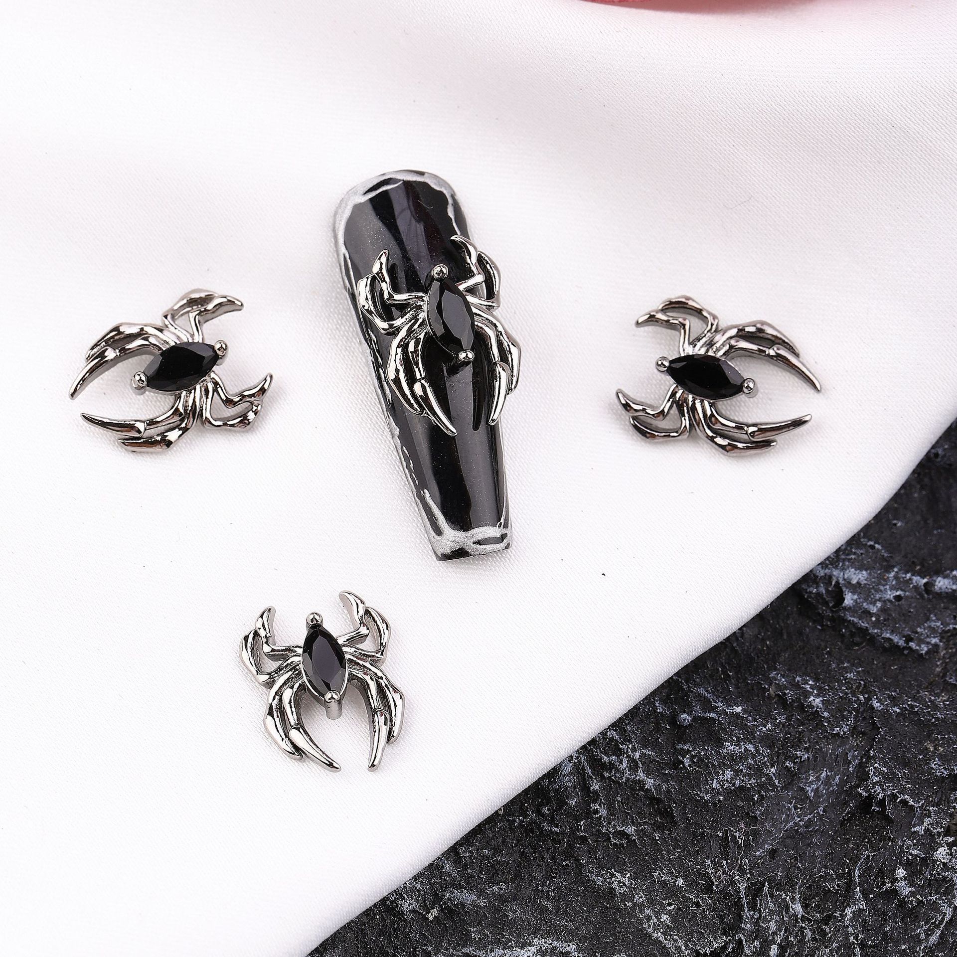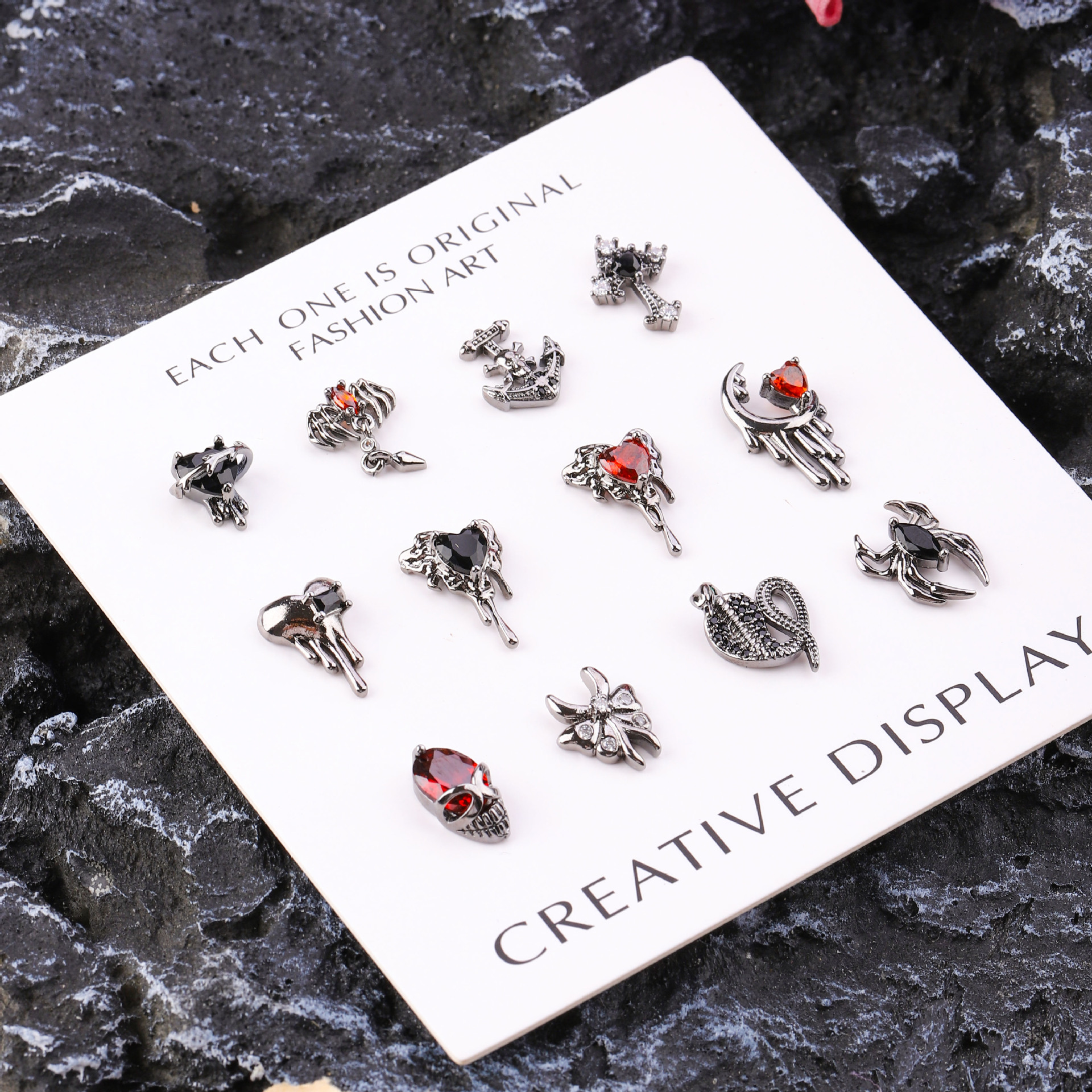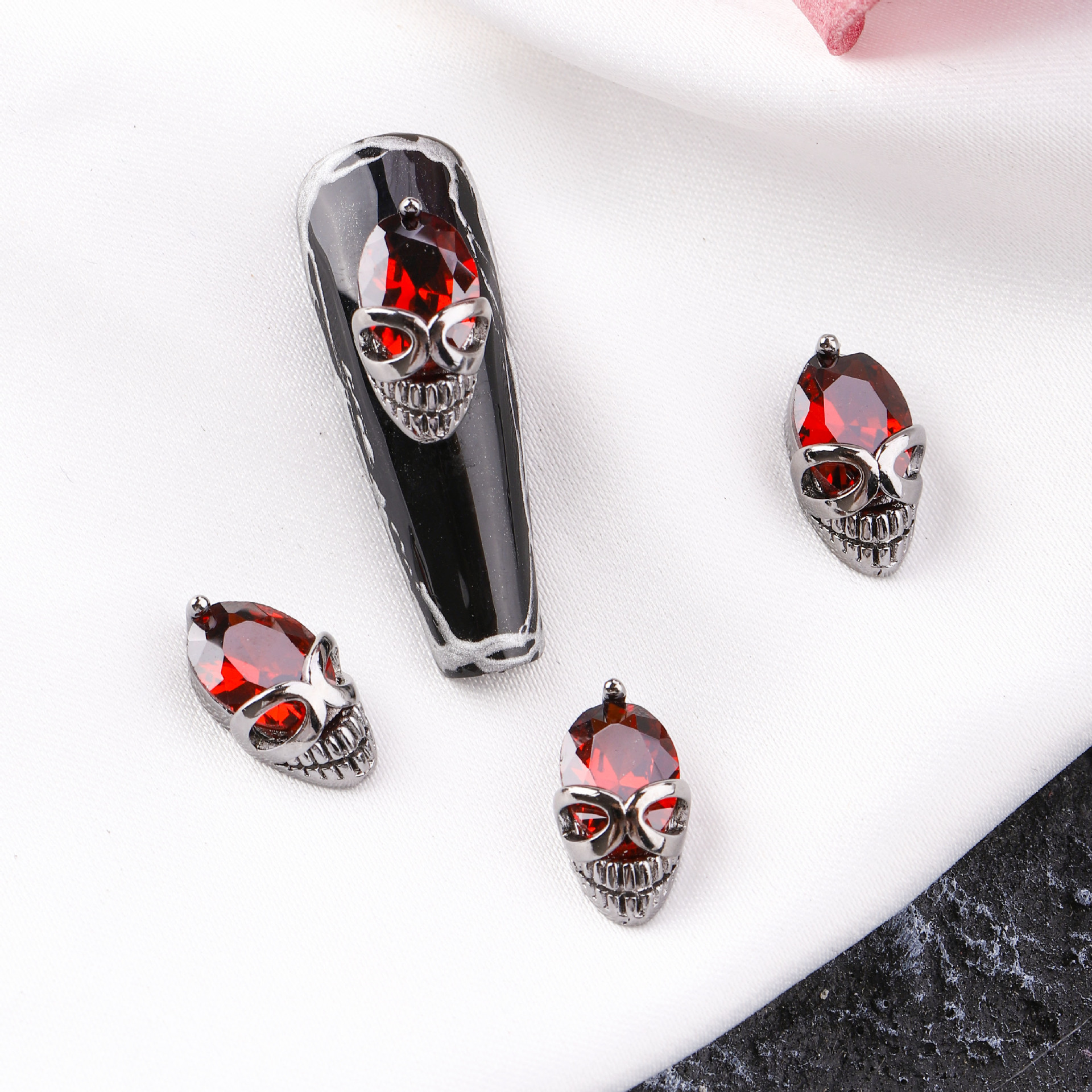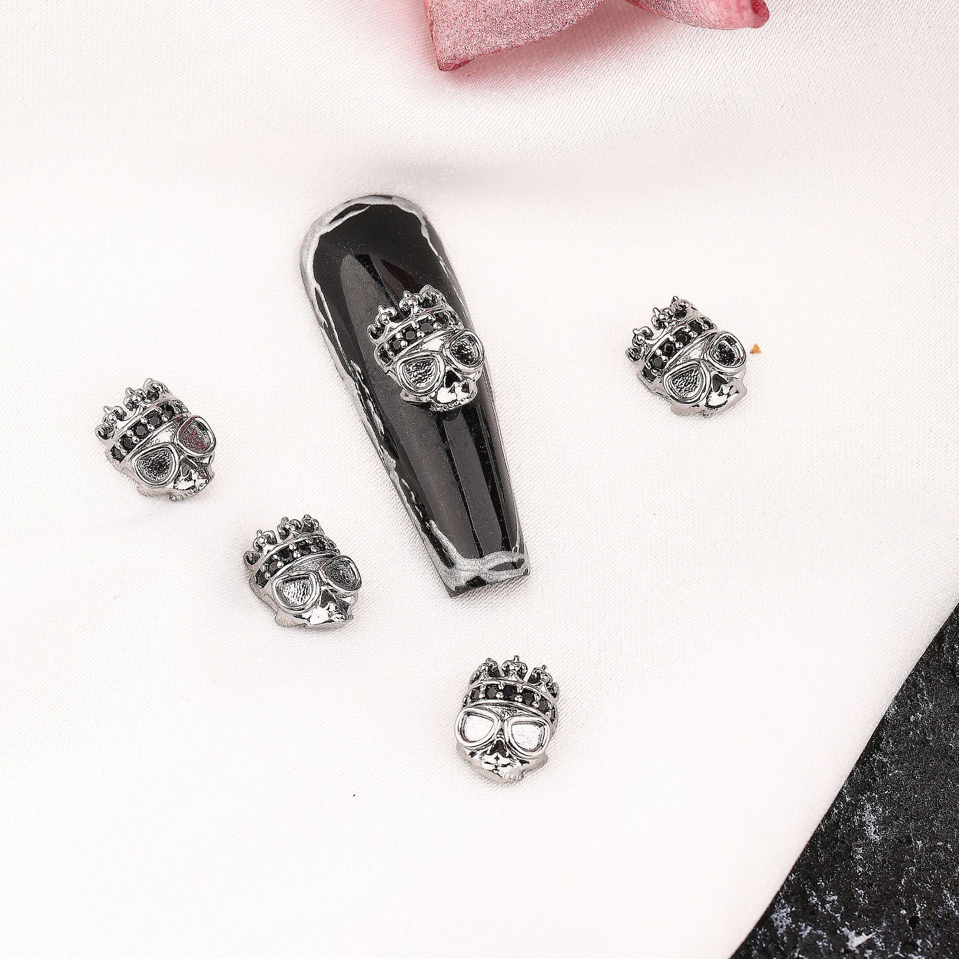 ハロウィンネイルアート クロウハート レトロクロス メタル銅製ジルコンハート スカルネイル ウェアラブルネイルアクセサリー