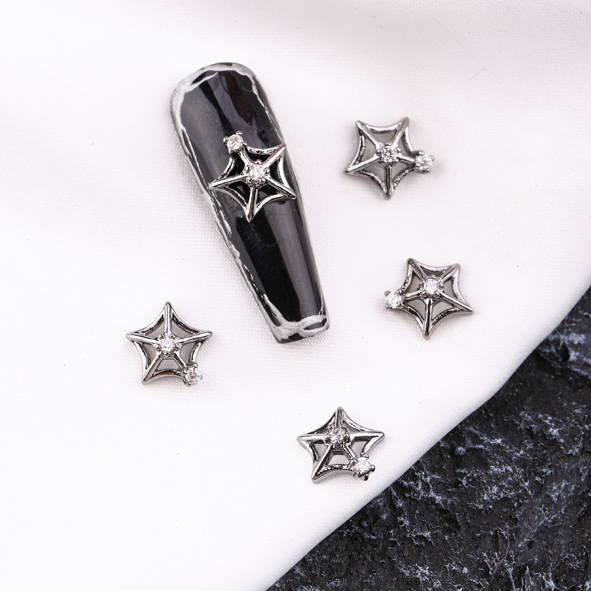 网红布契拉提系列美甲饰品爆闪锆石星芒四叶草镂空镶钻指甲钻批发