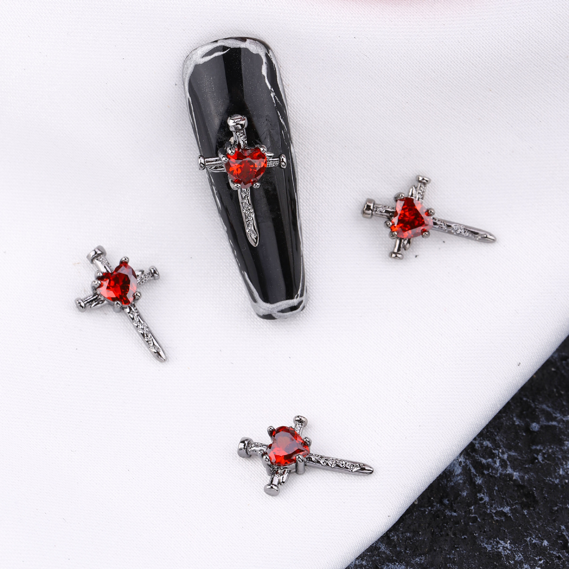 クロスボーダー新合金金属クロスネイルアートジュエリーパンクスタイルクロウハートクロスネイルデコレーション卸売