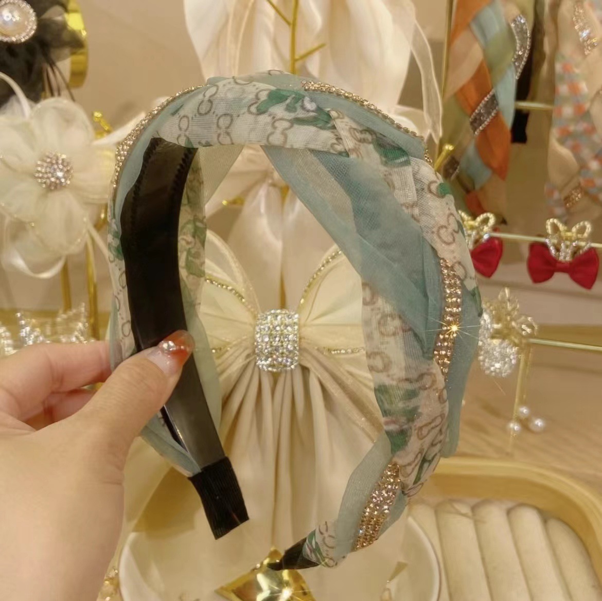 2022秋冬韓国ファッション感レトロ布芸結びカチューシャ髪束気質ワイドカチューシャ髪飾り