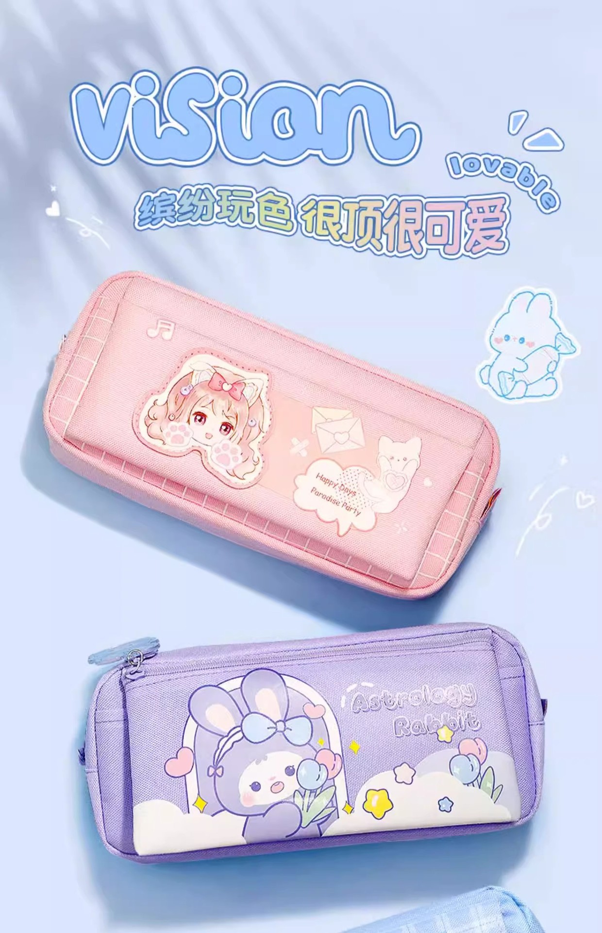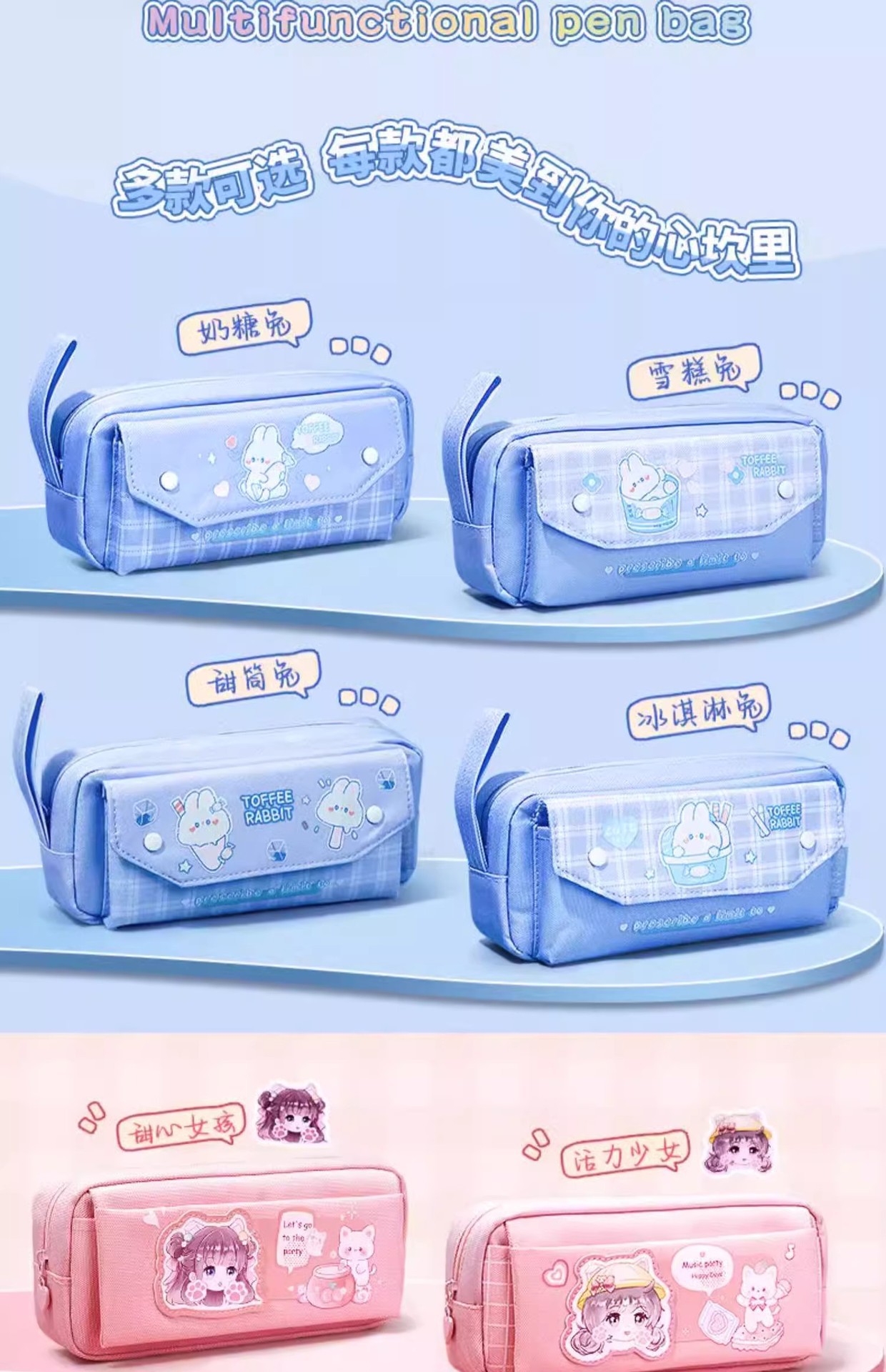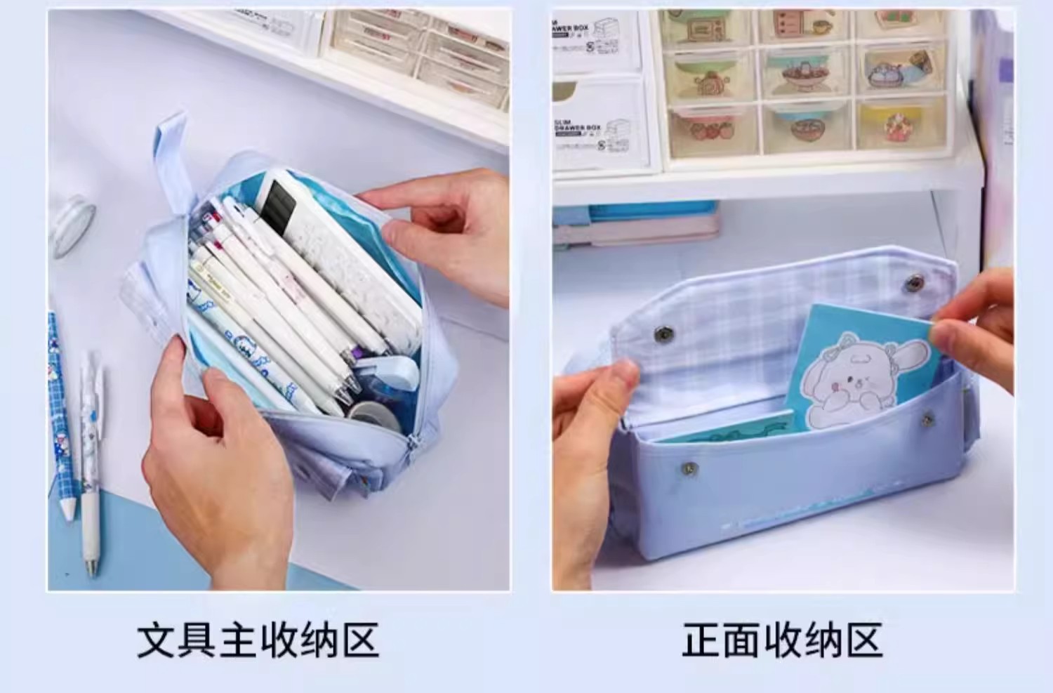咔巴熊魔术贴书包笔袋高颜值文具盒大容量笔袋小众不撞款学校用品