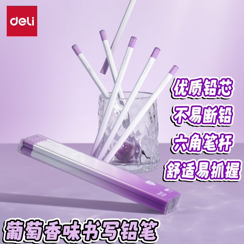 得力葡萄香味铅笔黑木六角杆书写铅笔小学生HB/2B铅笔书写绘图