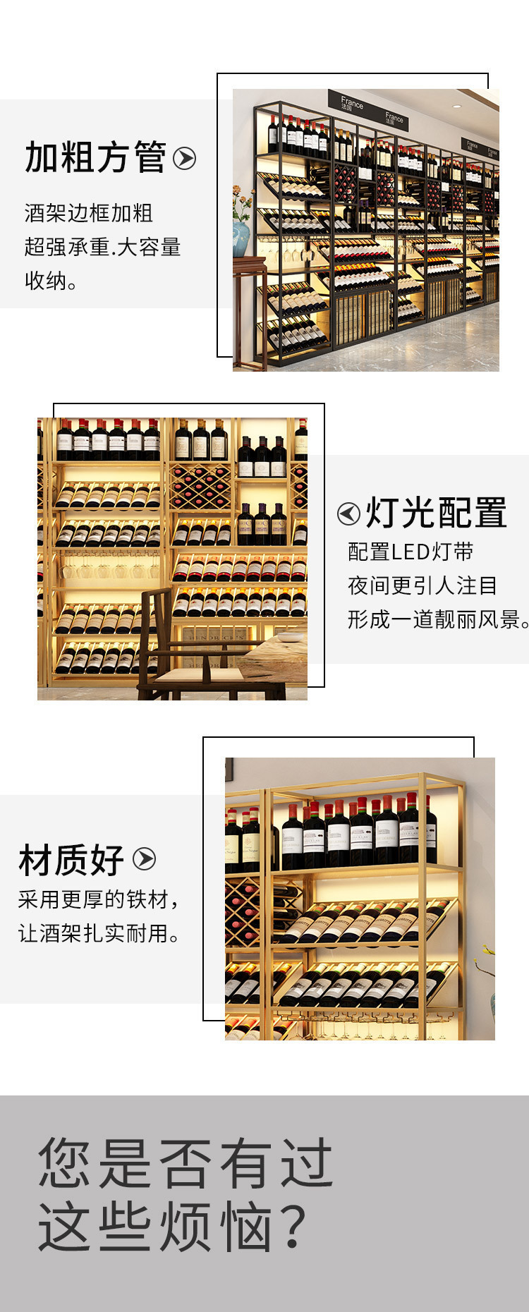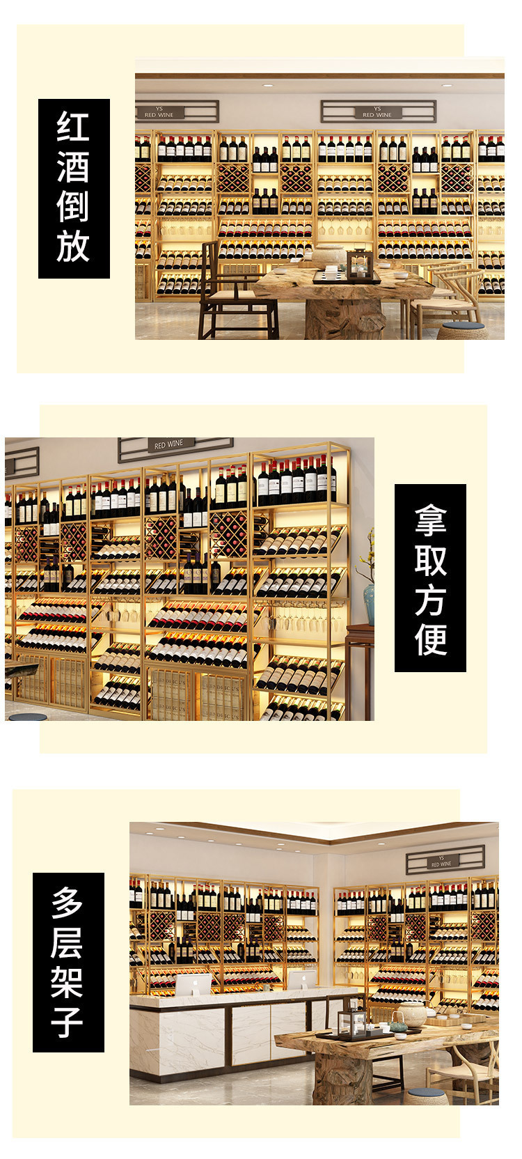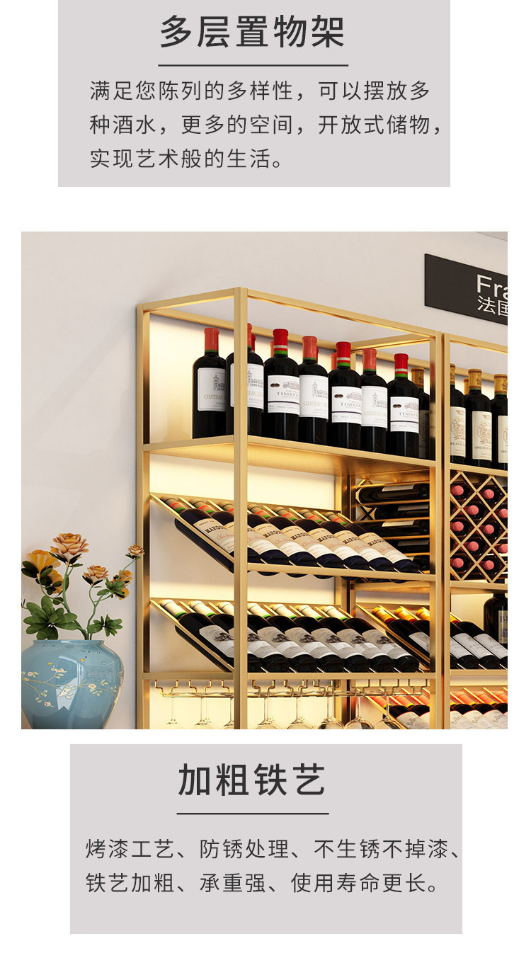 商用鉄芸床置き式多層ワインキャビネット酒場は壁に寄りかかって展示棚を収納しています。