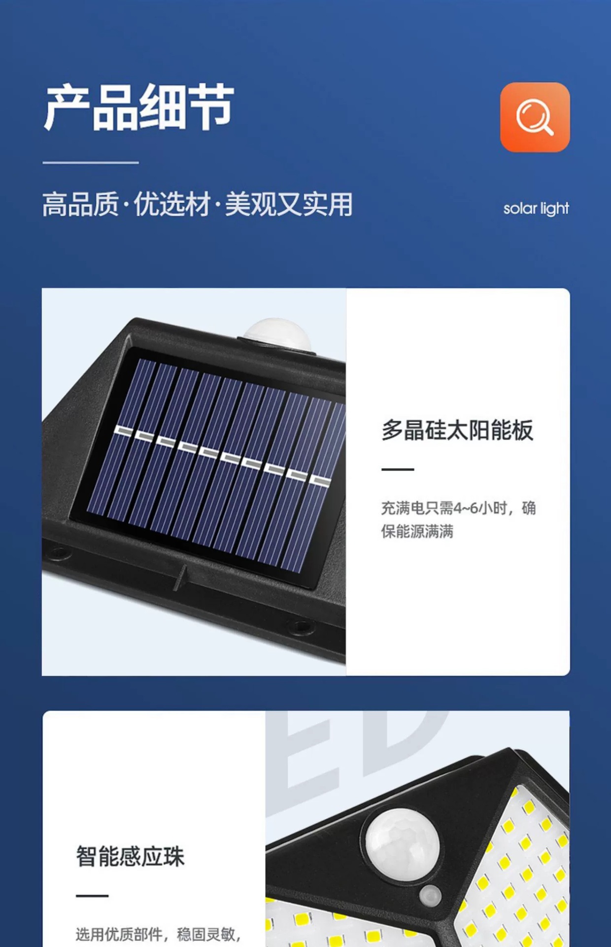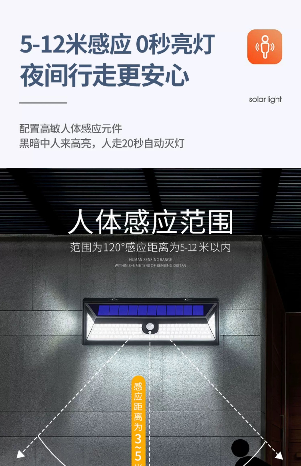 新型一体式太陽光自動スイッチ屋外庭灯人体感応式屋外led防水壁灯