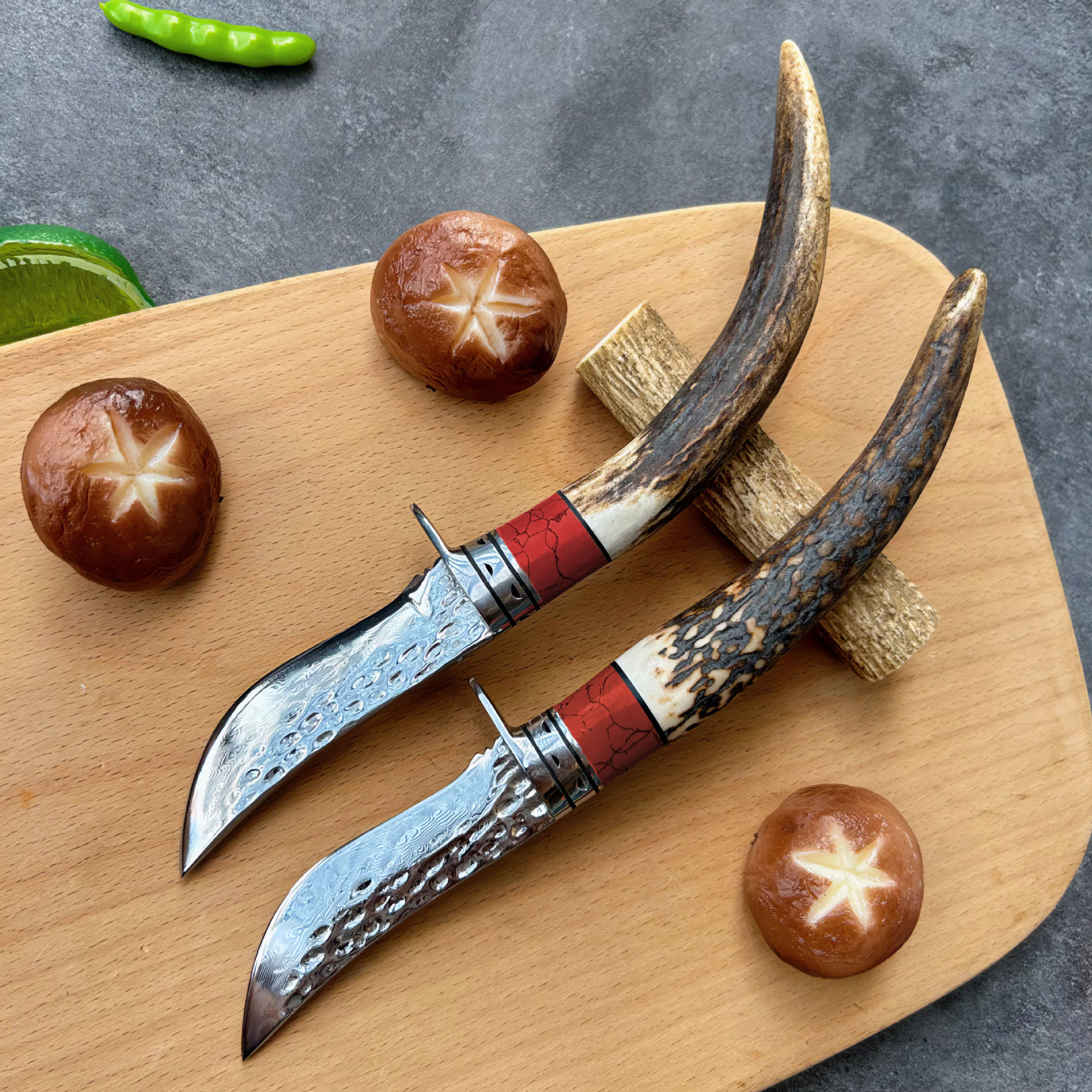 アウトドアナイフナイフナイフナイフナイフナイフナイフ鹿角ハンドルダマスカス鋼アウトドアナイフ直刀現物