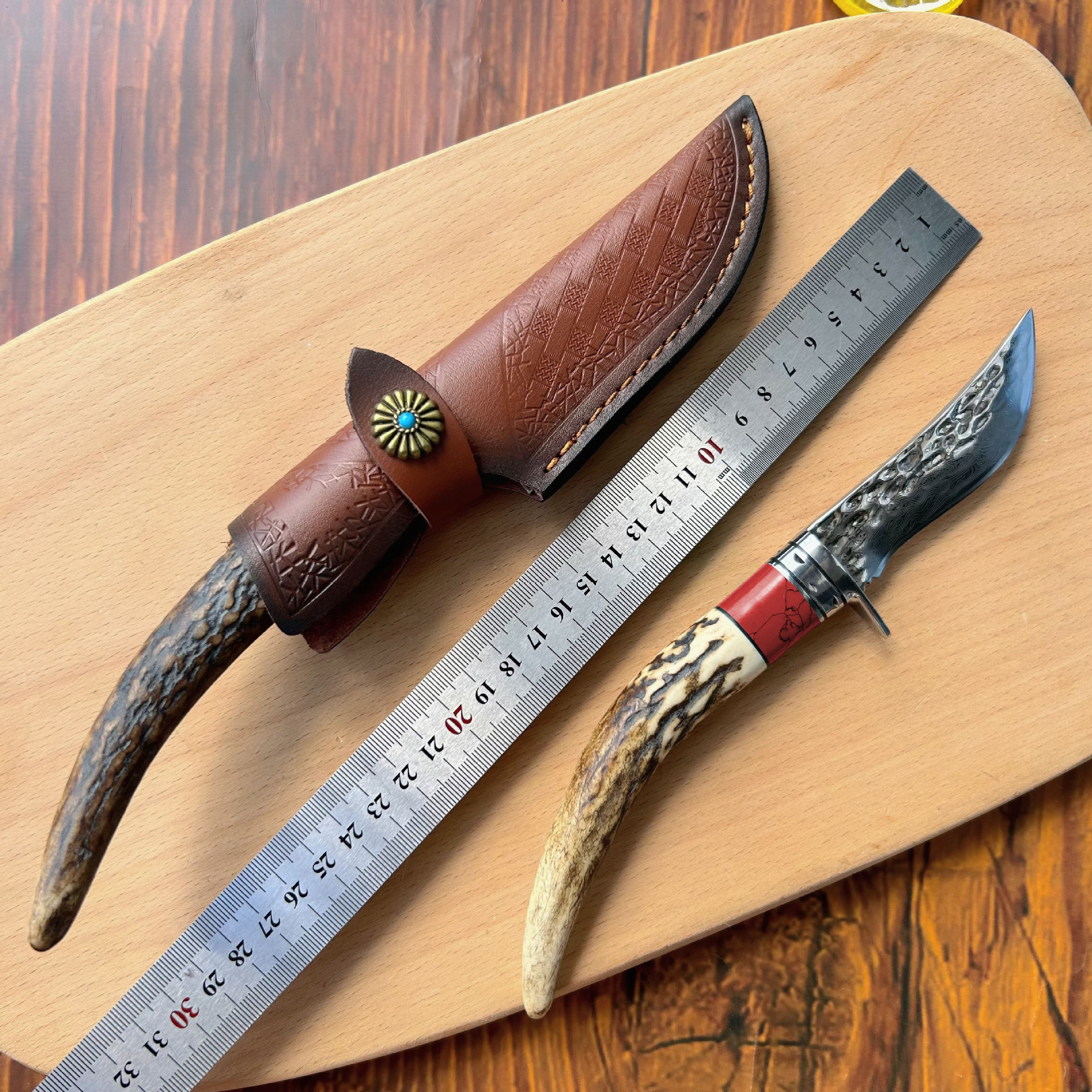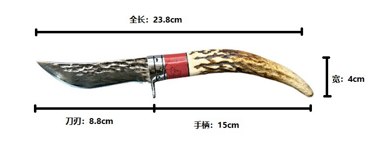 仕様 赤い松石の鹿の角の先の曲がった刃 (ナイフのカバーを配合します),赤松手鹿の角の先の曲がった刀 (単刀)