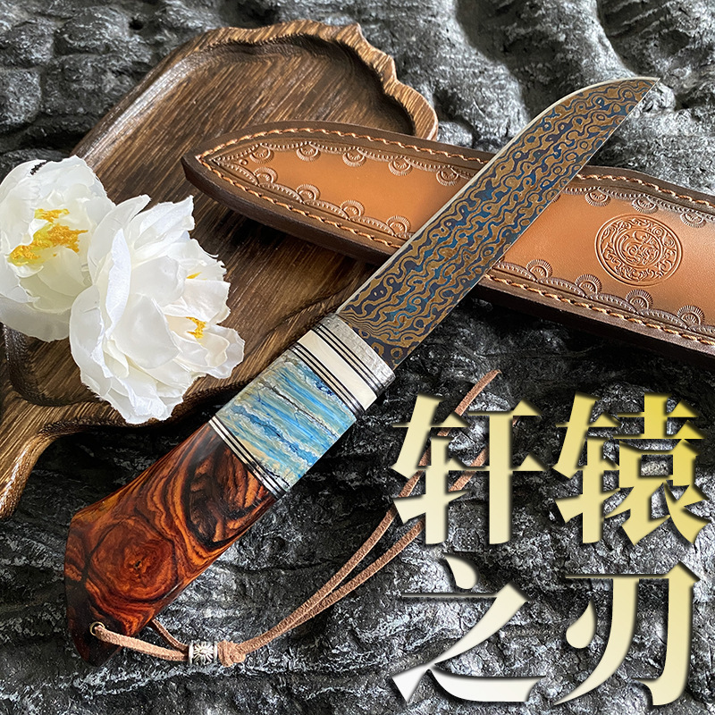 ナイフ フルーツナイフ 刃物 金属 鍛造ナイフ 芯なしカラーチタン焼き青刃 精巧なハンドル 180g ナイフケース付き