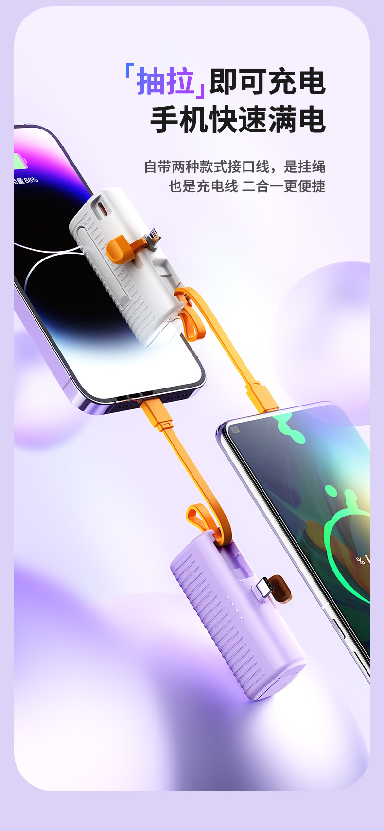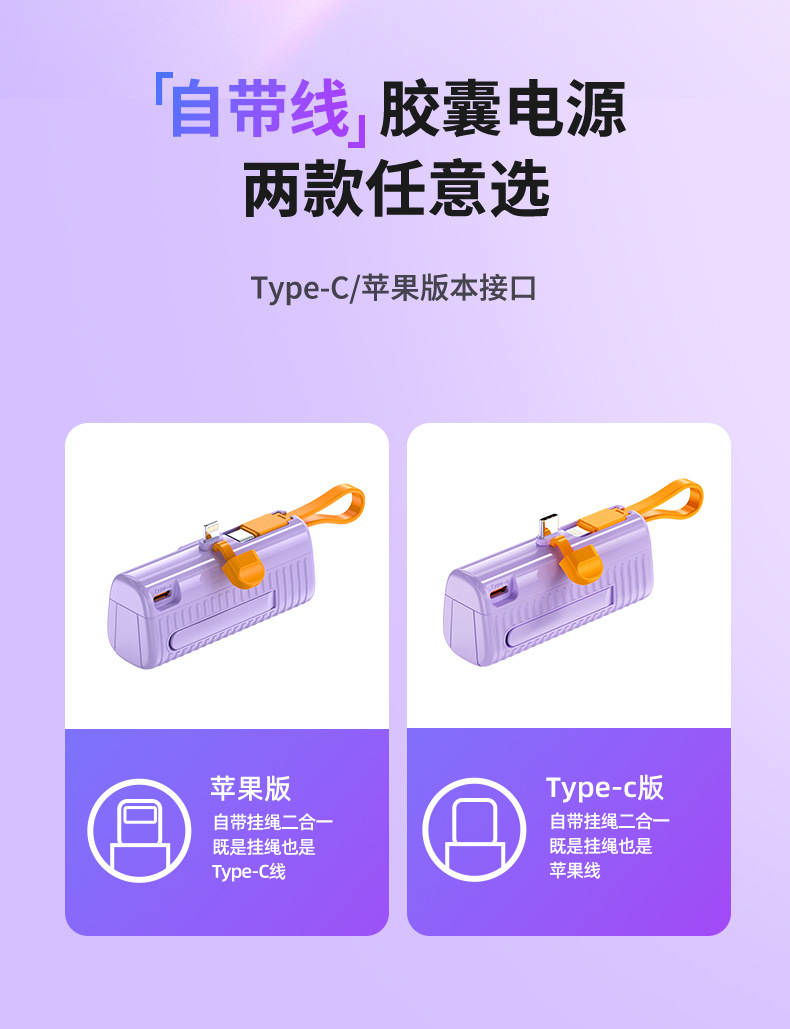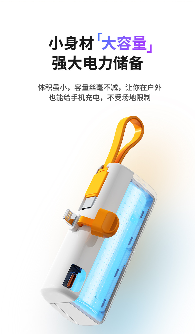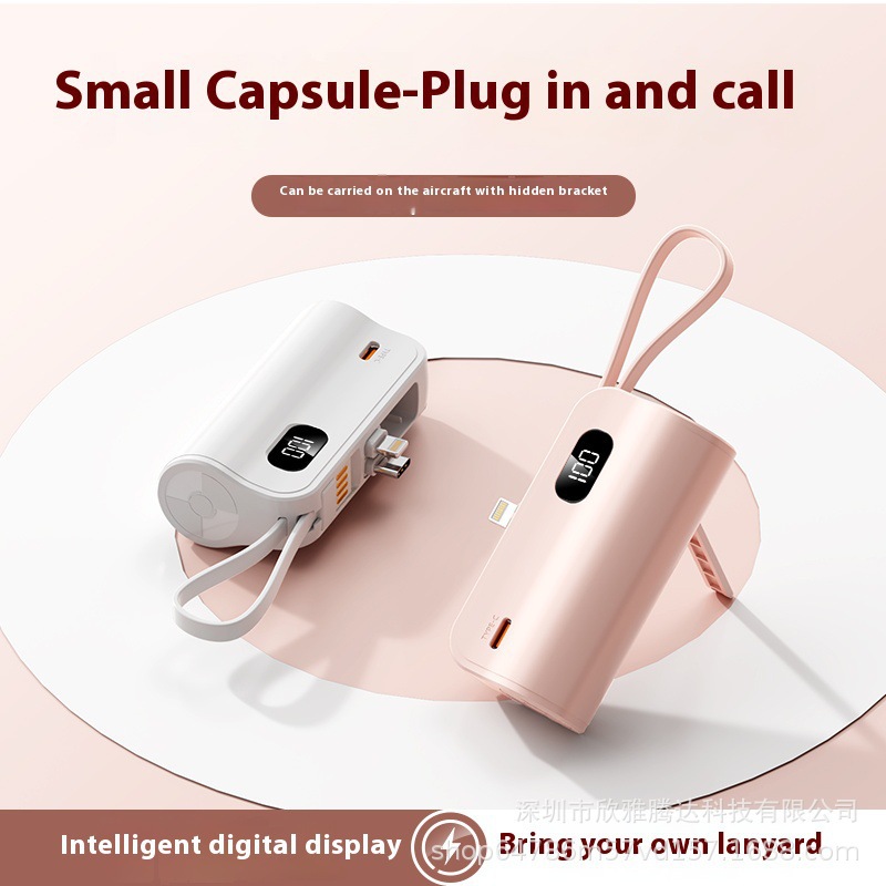 新型カプセルポケット5000ミリアンペア充電宝小型携帯ケーブル付き移動電源プレゼント印刷