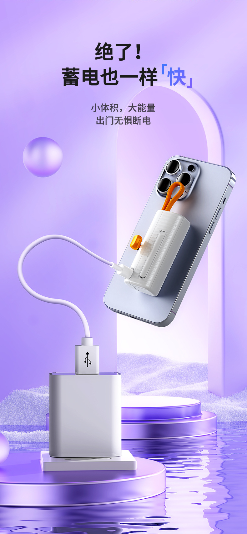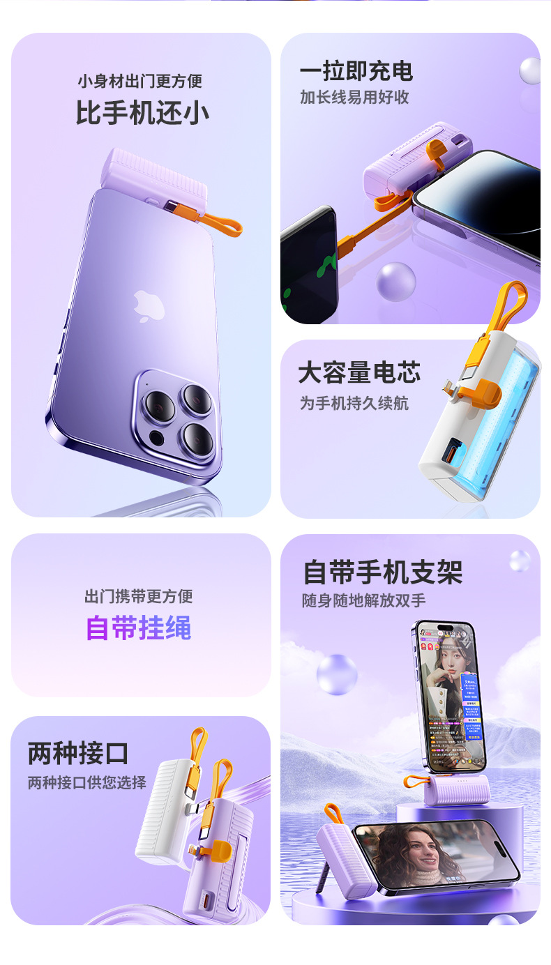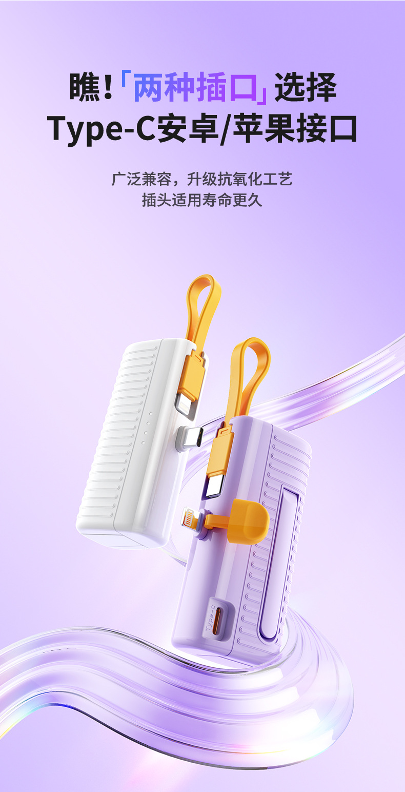 新型カプセルポケット5000ミリアンペア充電宝小型携帯ケーブル付き移動電源プレゼント印刷