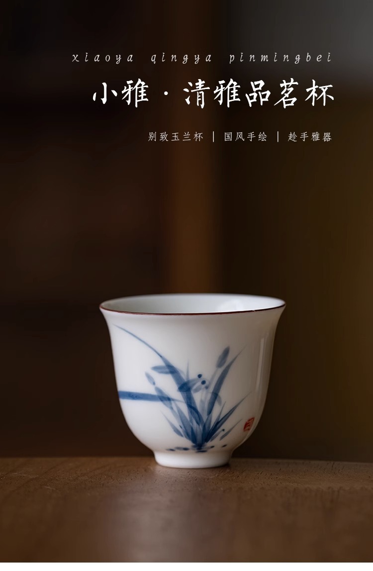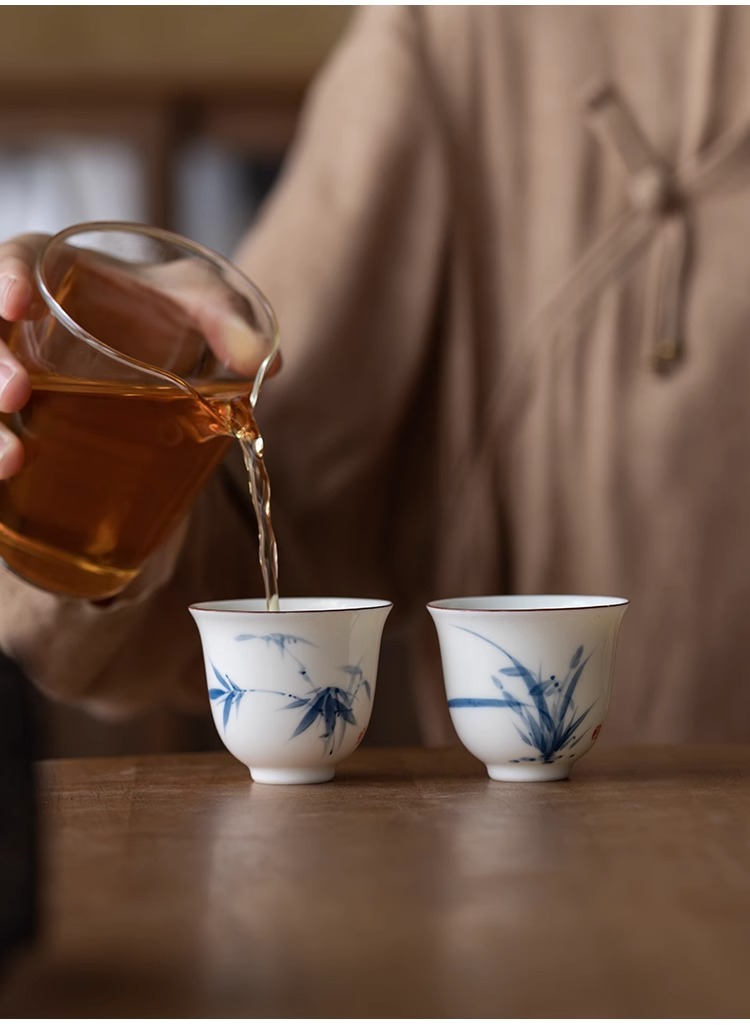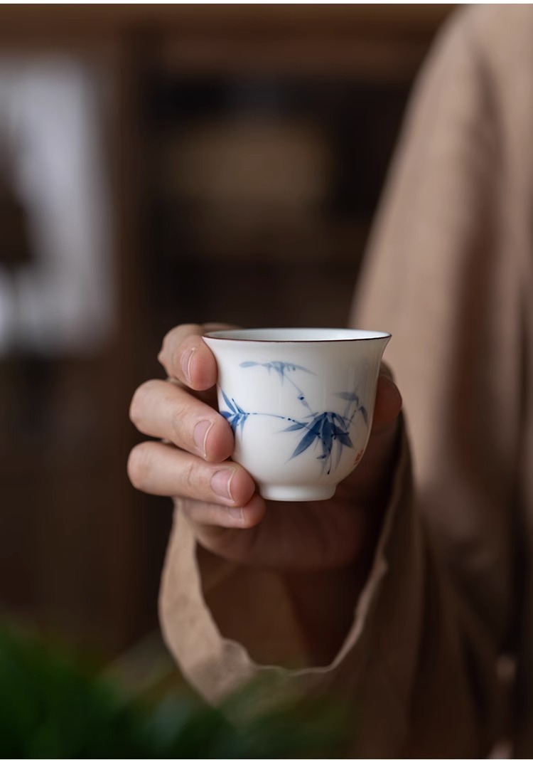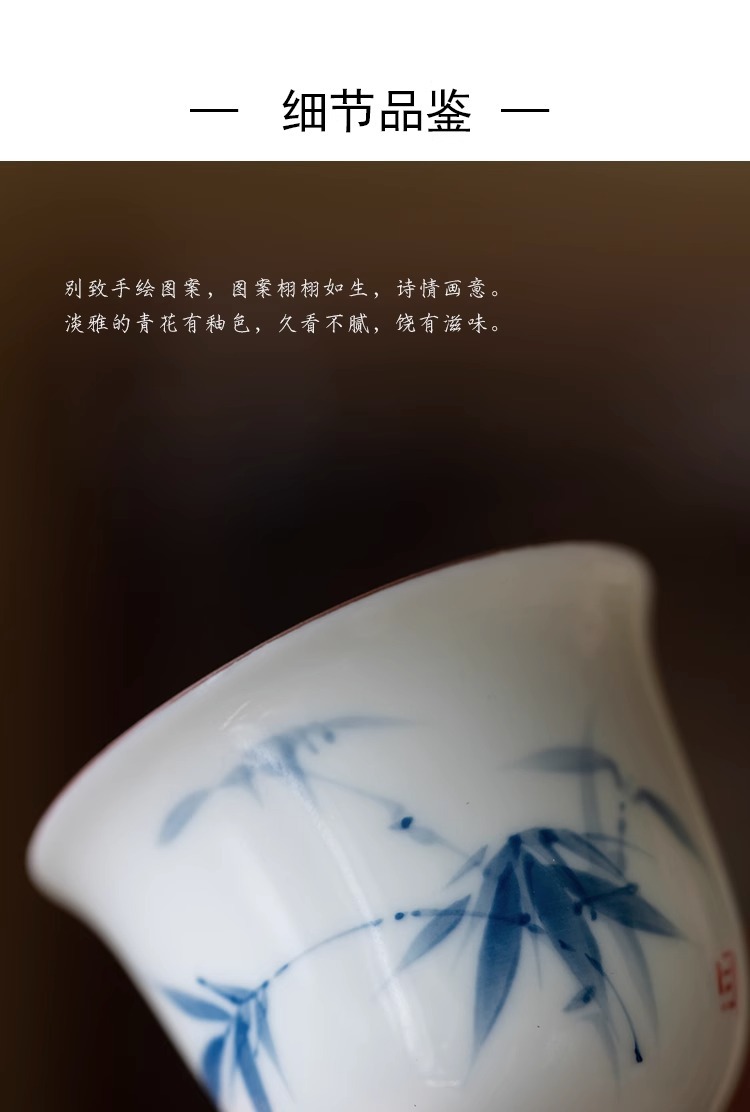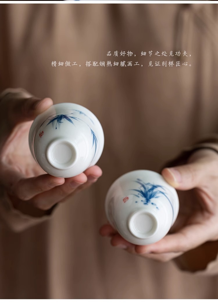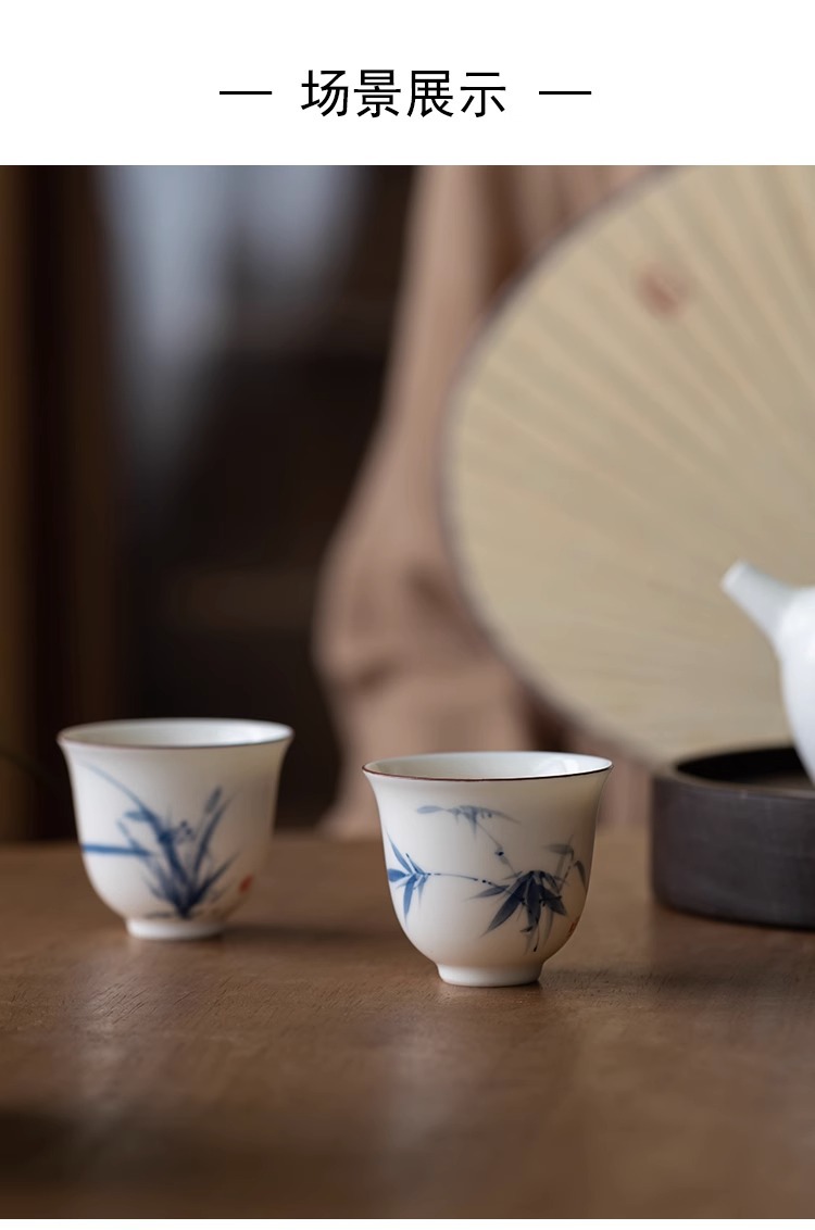 陶怡中式田園幽蘭茶杯手描き雅竹品茗杯陶磁器主人杯単杯茶具白磁