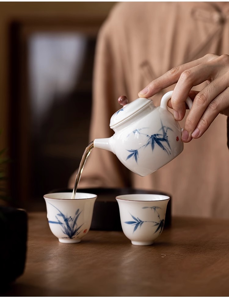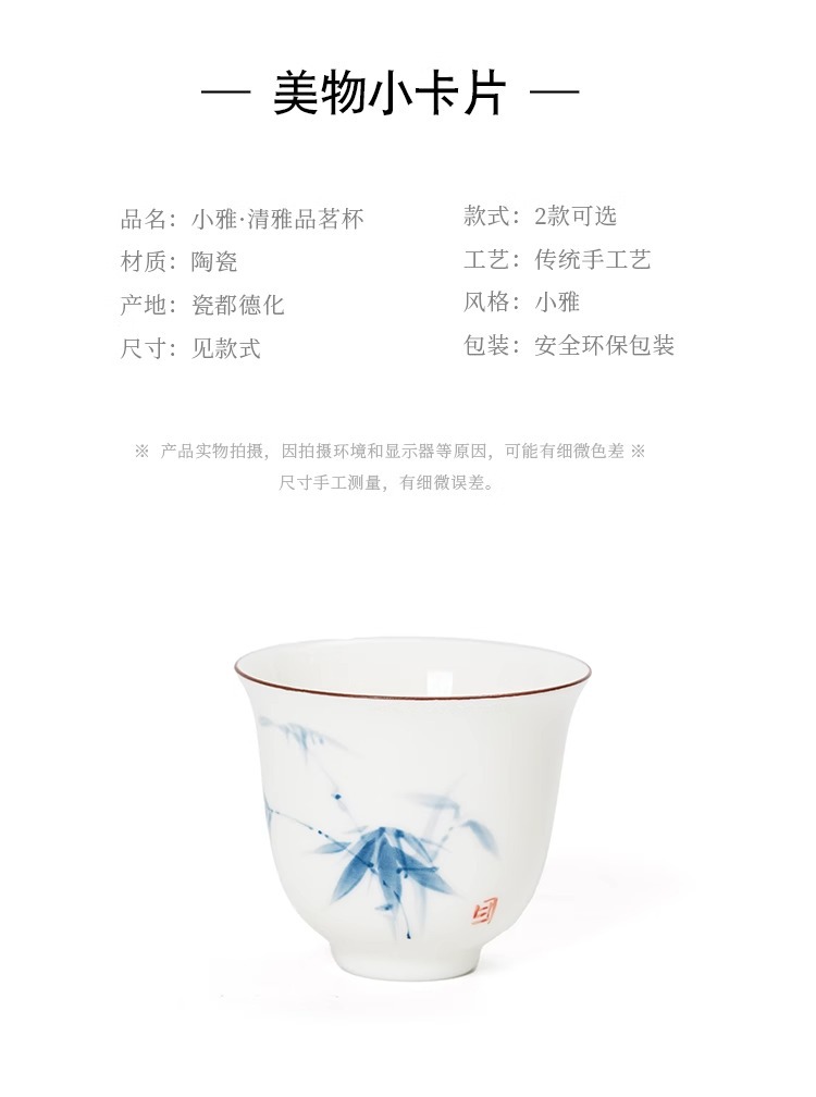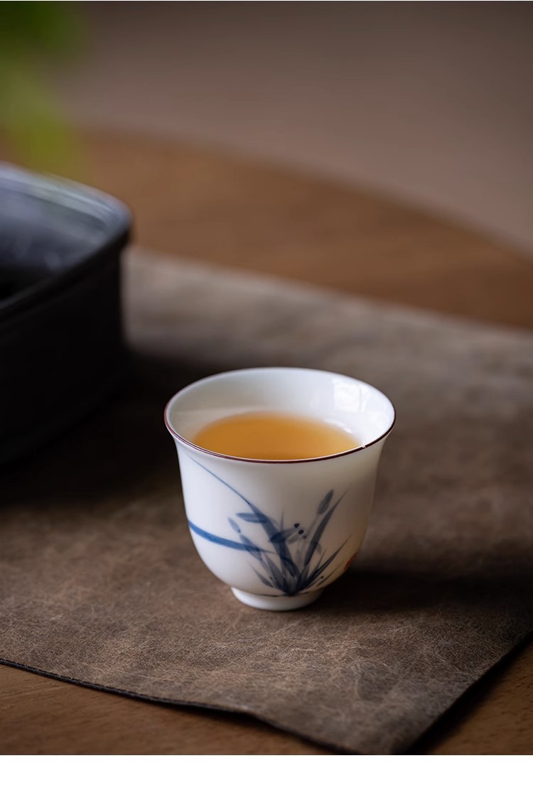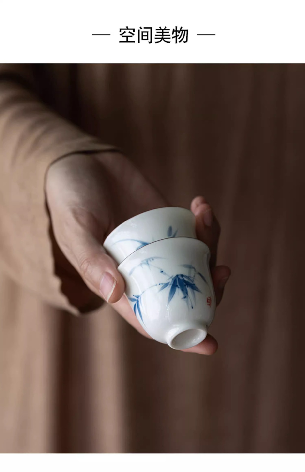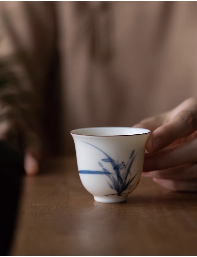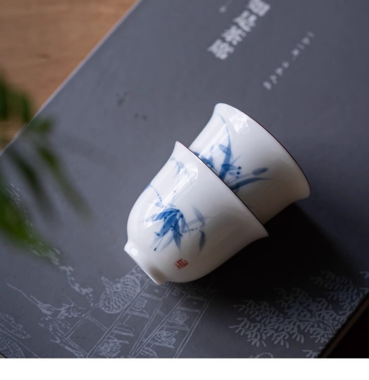 陶怡中式田園幽蘭茶杯手描き雅竹品茗杯陶磁器主人杯単杯茶具白磁
