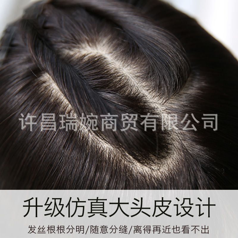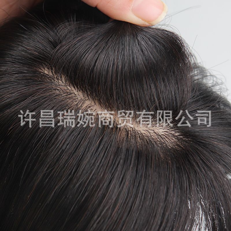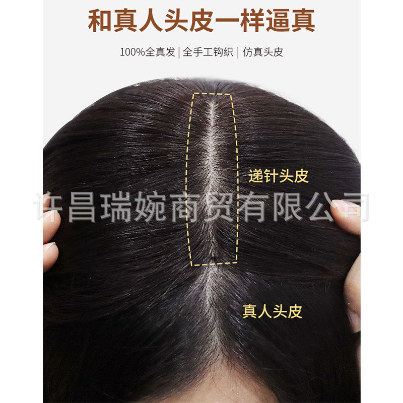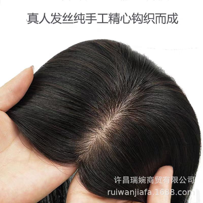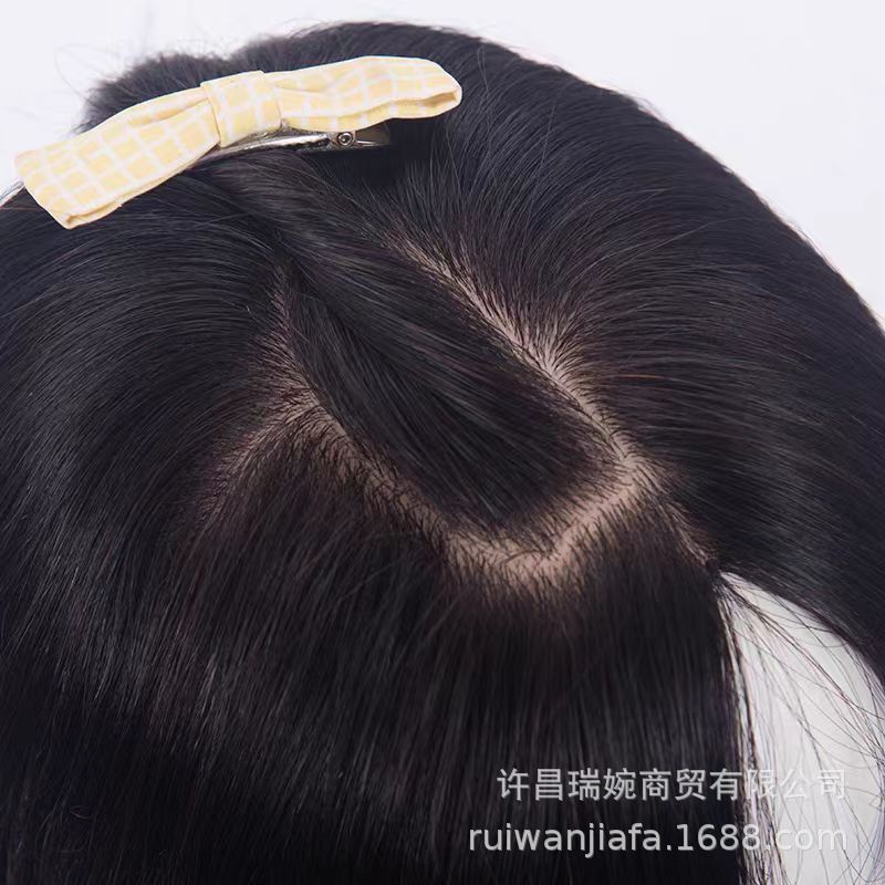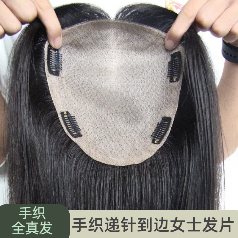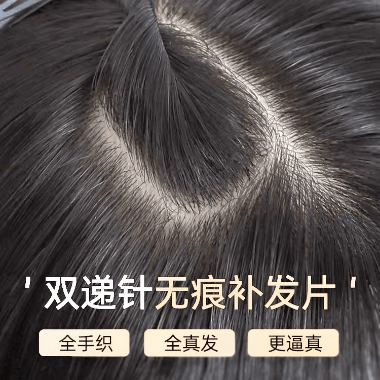 双递针假发片真人发丝手织头顶补发假发女无痕增加发量蓬松补发片