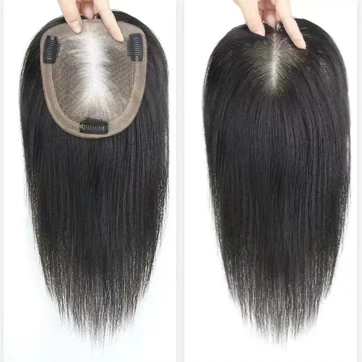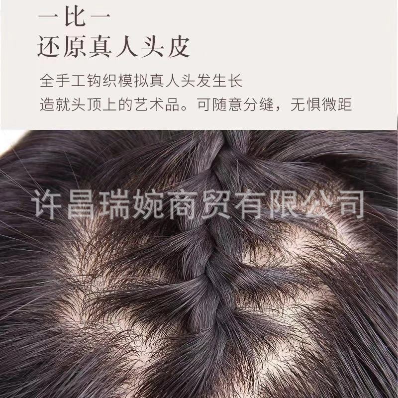 頭頂部が高く、人毛100%使用の女性用ウィッグ、目に見えない、軽量で通気性があり、頭頂部がふわふわで、髪のボリュームを増やし、白髪をカバーするヘアピースです。