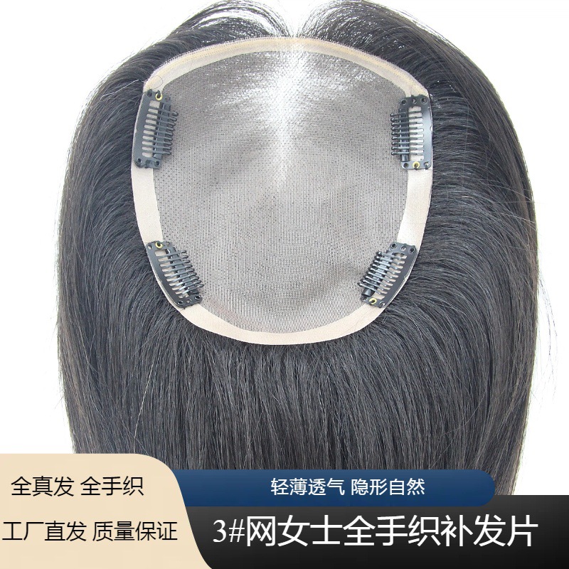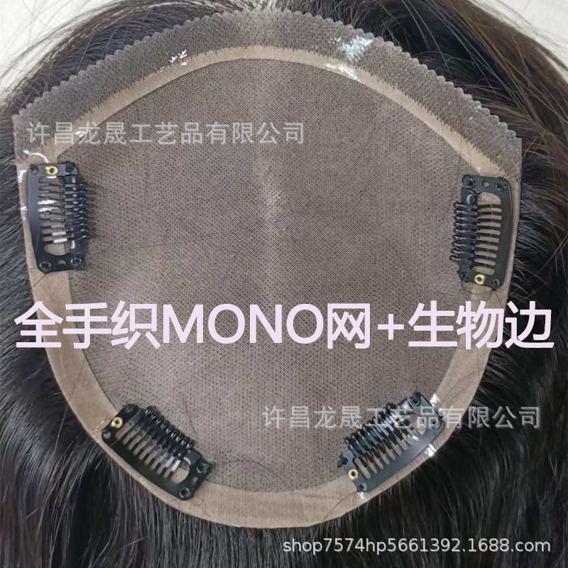 前额生物边女士全手织 mono 网真发补发片 头顶补发 盖白发增发量