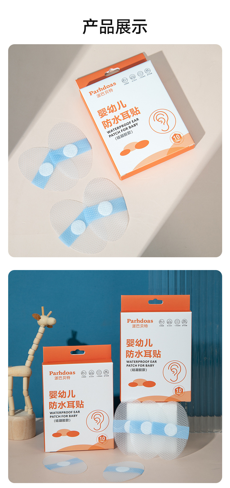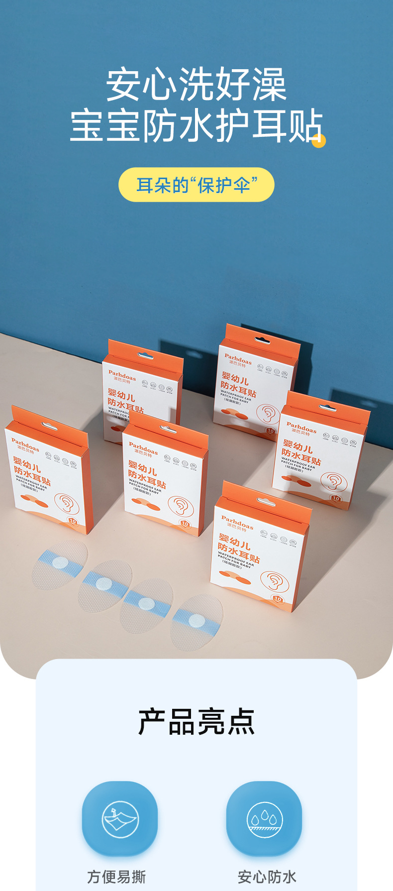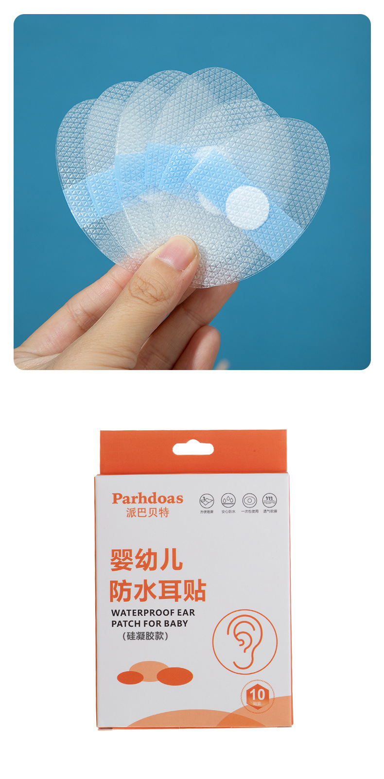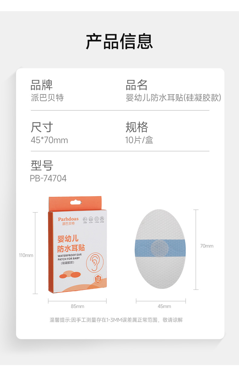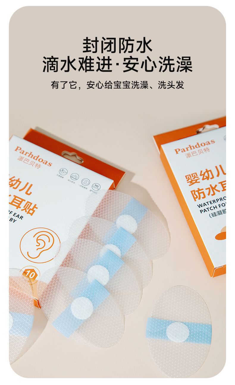 派巴贝特婴幼儿硅凝胶护耳贴游泳防水耳贴透气软膜10片装批发
