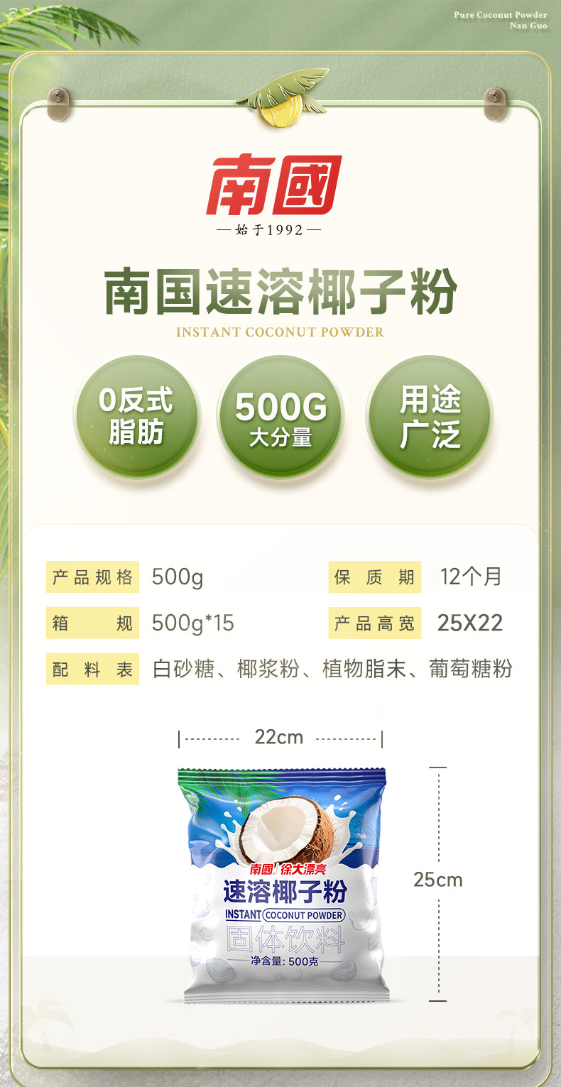 南国食品500g純ココナツ粉飲食焙煎原料包装商用包装海南ココナツパルプココナツミルク粉