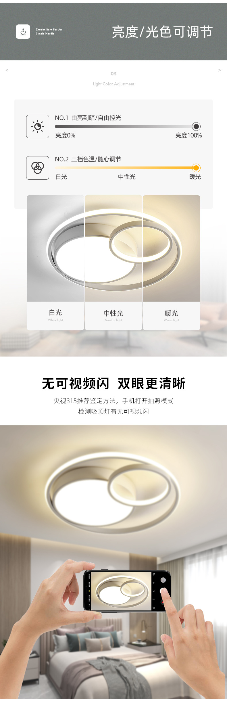 ライトの色 Ledハイライト白色光,Led三色変光,Led無極調光 + リモコン,【天猫精霊金】-携帯電話app-音声知能
