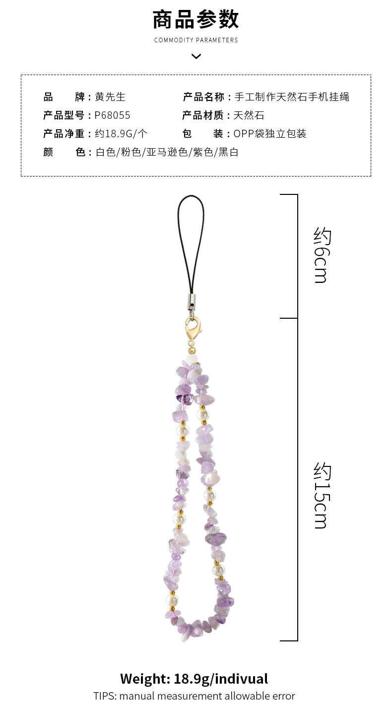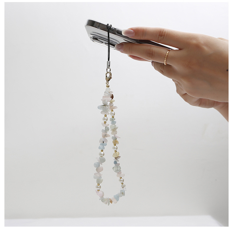 天然砂利ビーズ携帯電話チェーン新しいパールファッションクロスボーダーアマゾンクリスタル瑪瑙原石携帯電話ストラップ