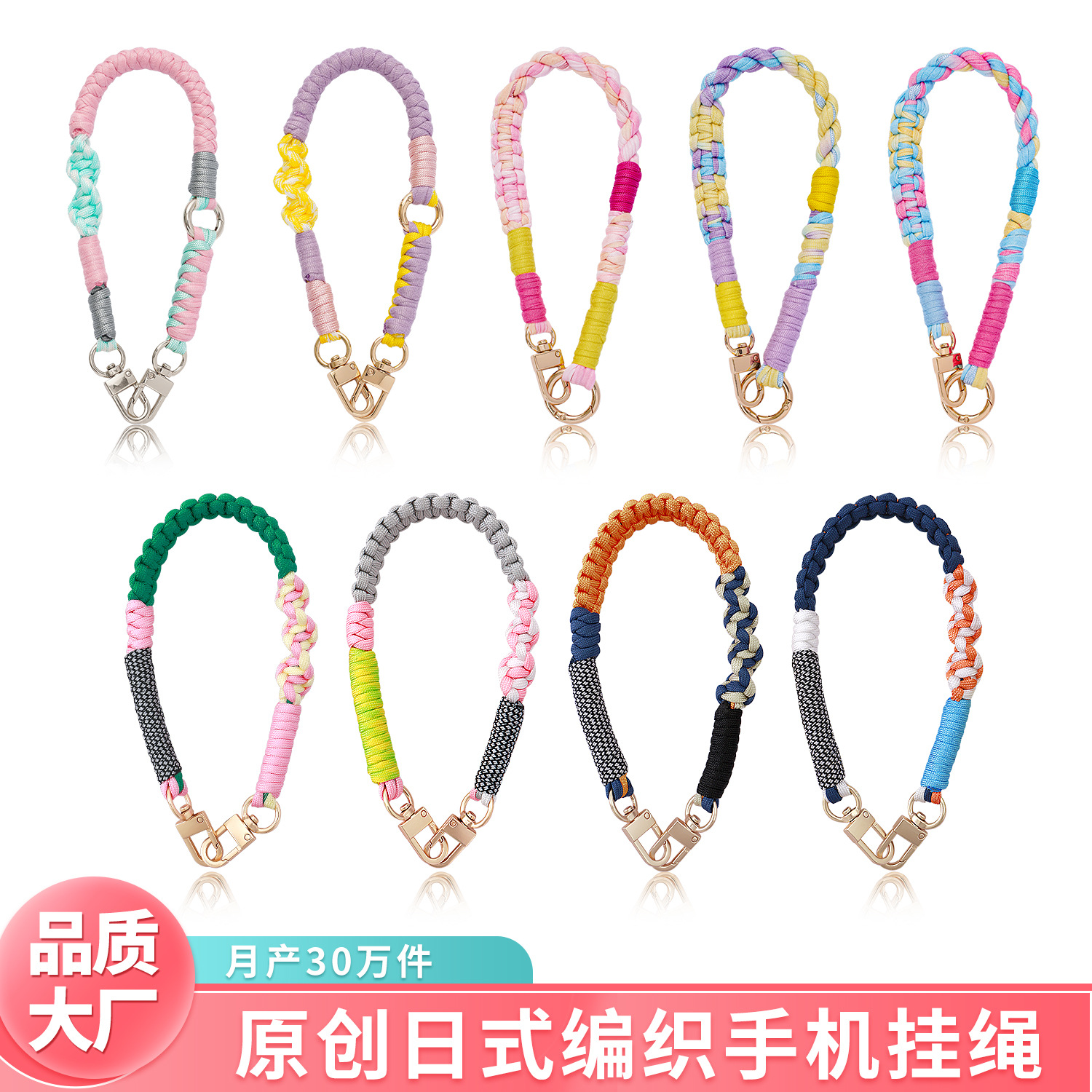 クロスボーダー日韓ins風携帯ストラップショートタイプ高品質カメラ紛失防止手首ロープ手編みストラップ