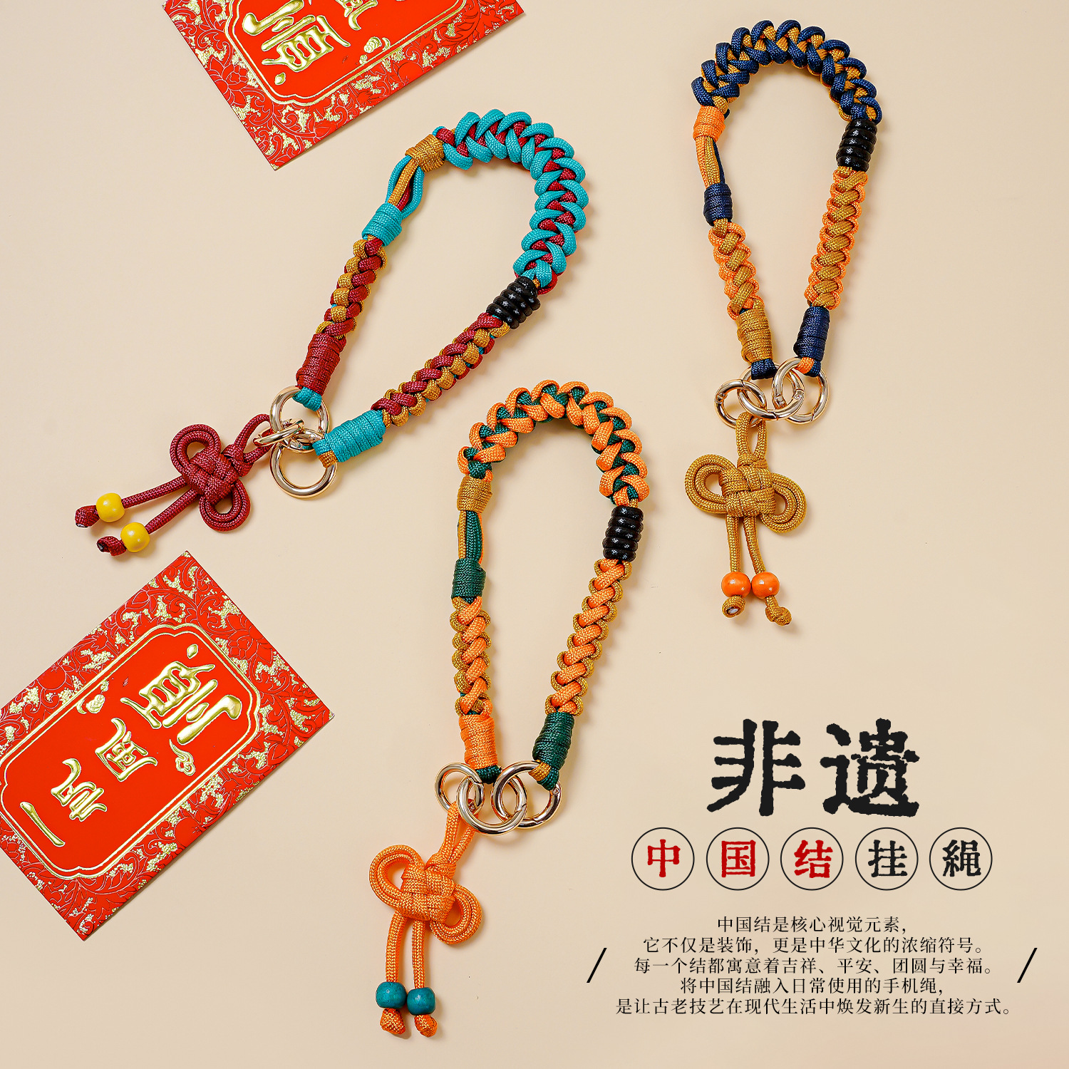 原创新年手机挂绳跨境民族风中国结手工编织高级感氛围复古手机链