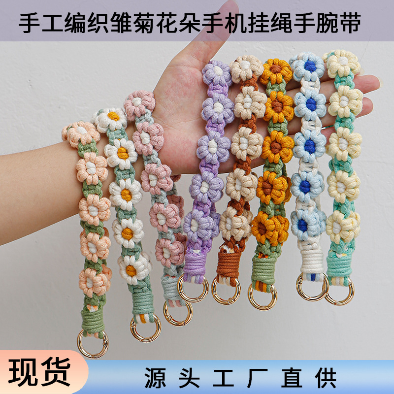 手編みのリストバンドのキーホルダー卸売り欧米アマゾンins風手作花デイジーの鍵飾り