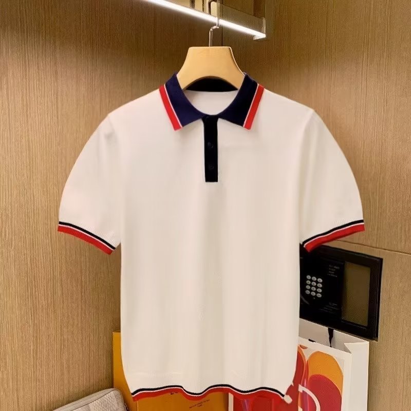 韓国の夏の2023年の襟のtシャツの半袖の男性の軽くて豪華な高級感の流行の青年のニットの服のpo