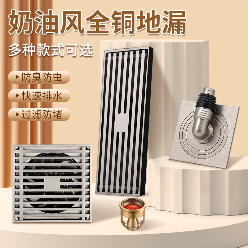 防臭排水口、正方形全銅排水口、浴室洗濯機排水口、隠蔽型大排水量防臭排水芯