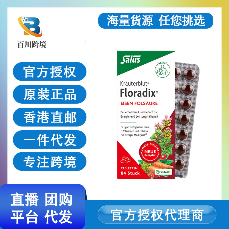 铁元Salu-s Floradix德国红铁片叶酸片剂84粒/盒成人女性孕妇补铁