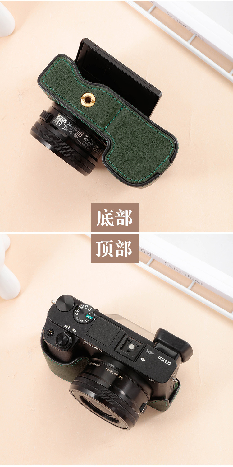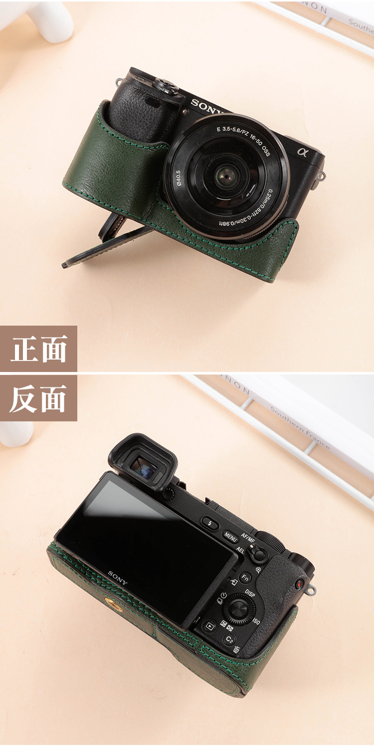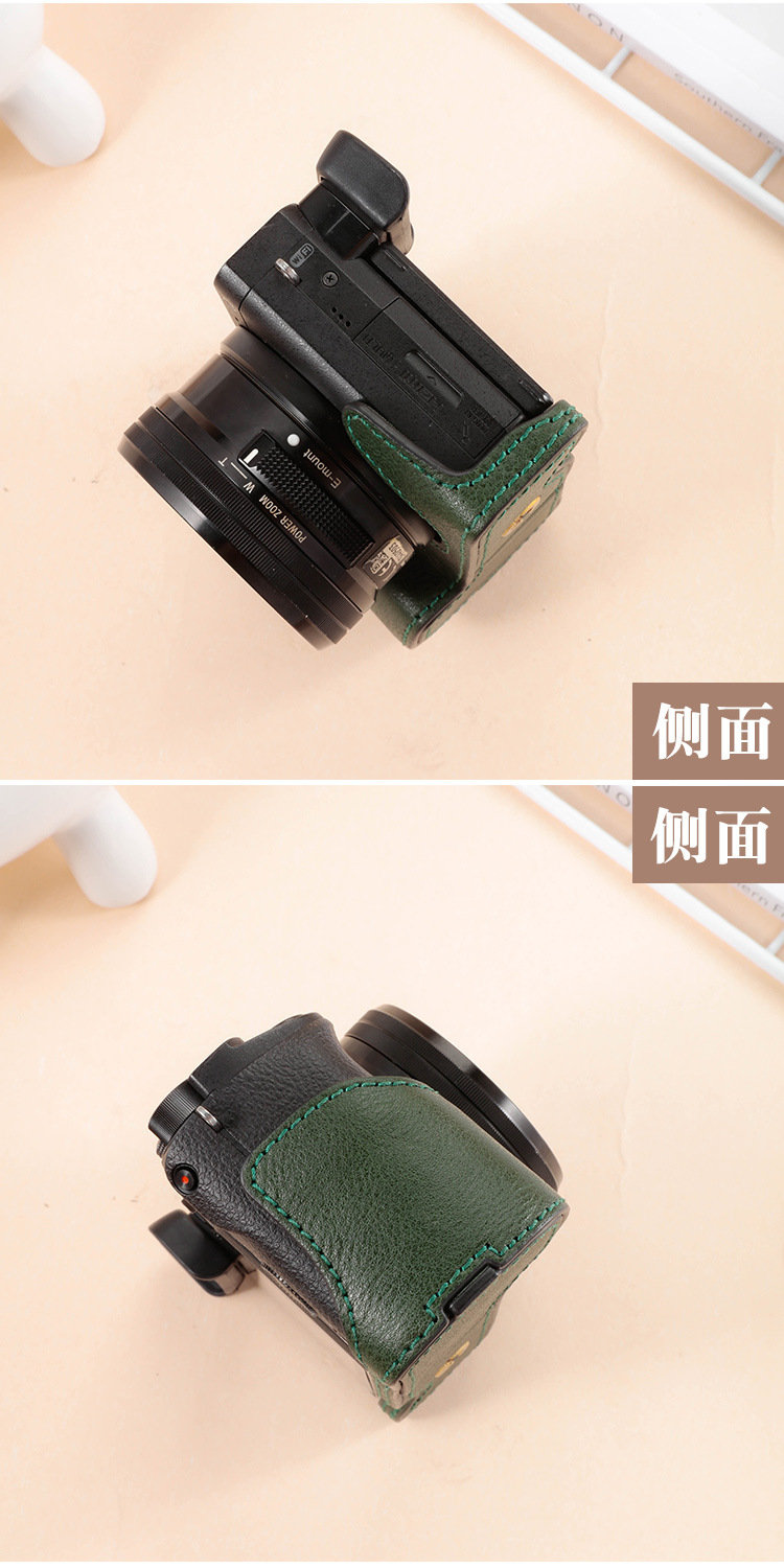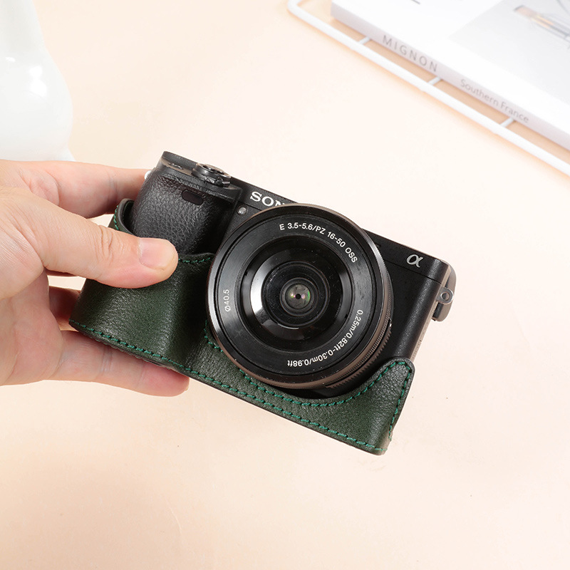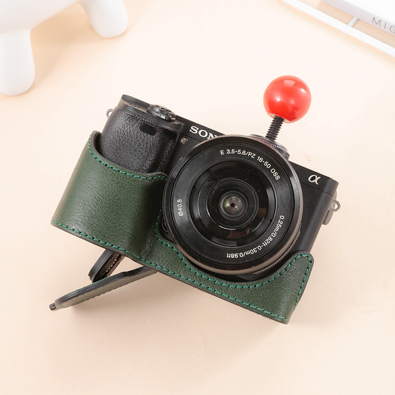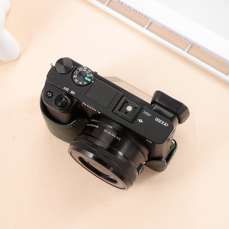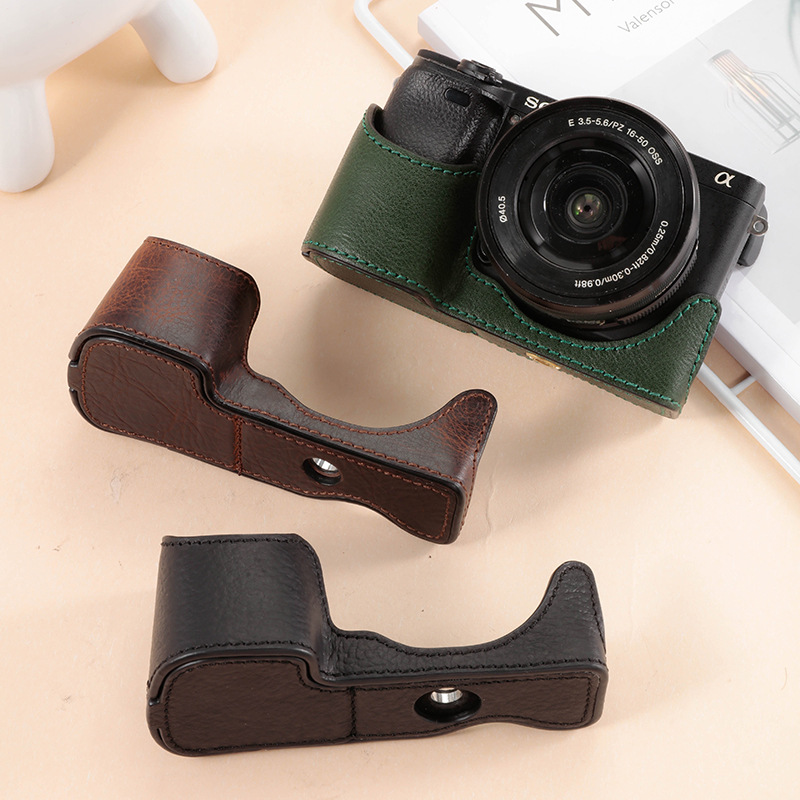 ソニーzve10lカメラバッグa6300 a6100 a6400 a6000マイクロ真皮ベース皮カバー半セット
