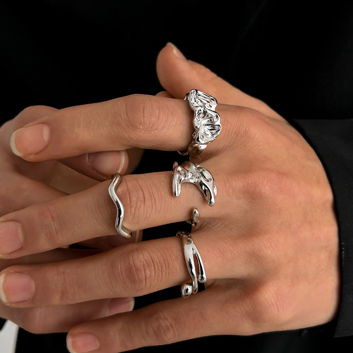 欧米のクロスボーダー指輪セット男性高級感シンプルファッション個性指輪幾何学金属人差し指リング