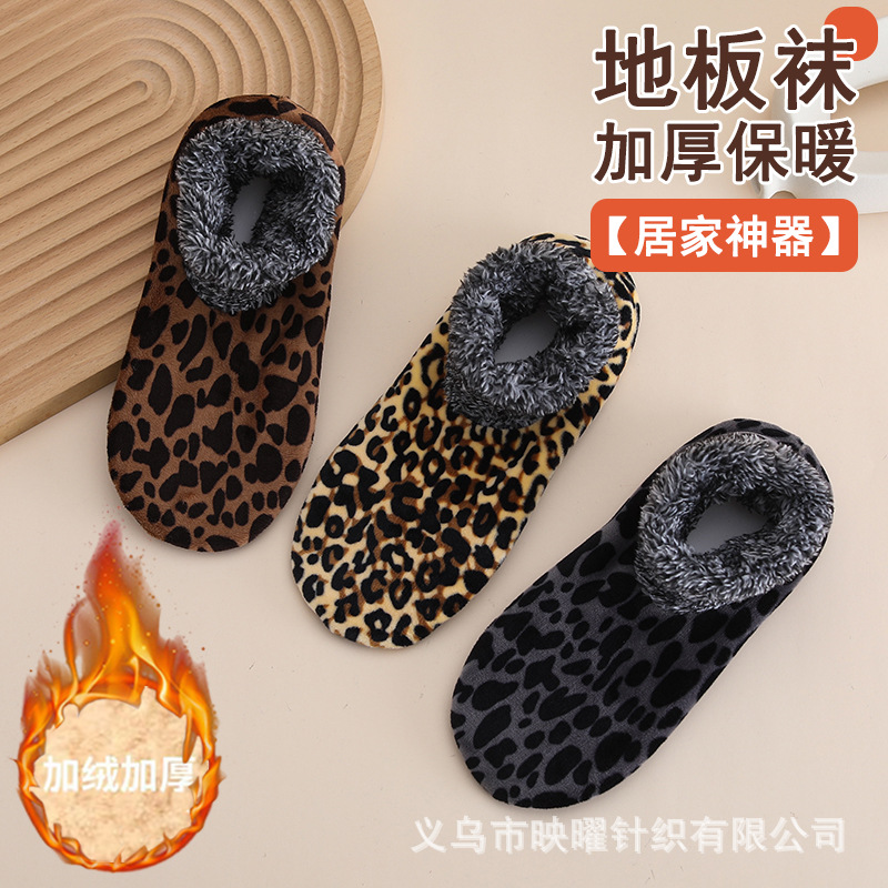 跨境爆品热销女士冬季地板袜豹纹地板袜大码女士冬季地板袜 温暖