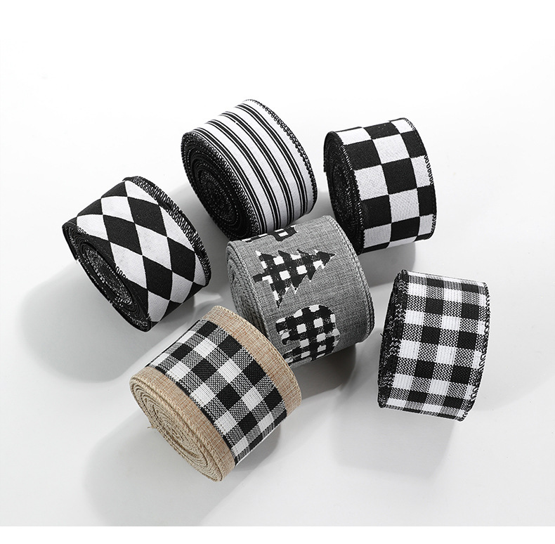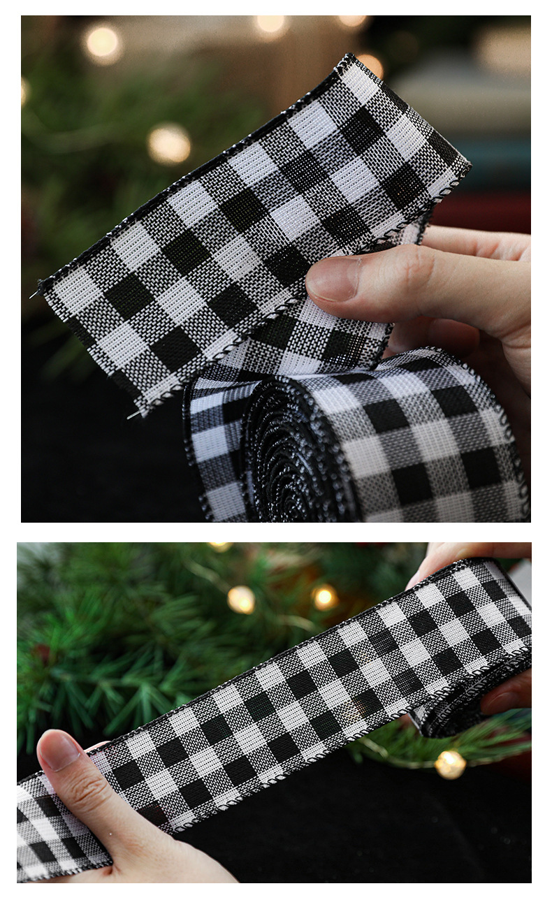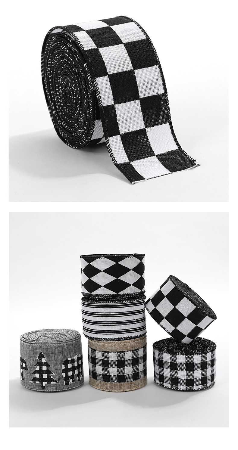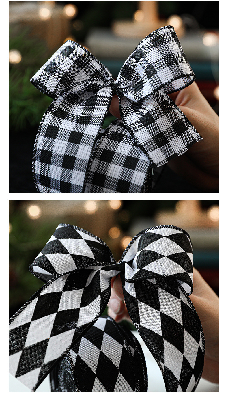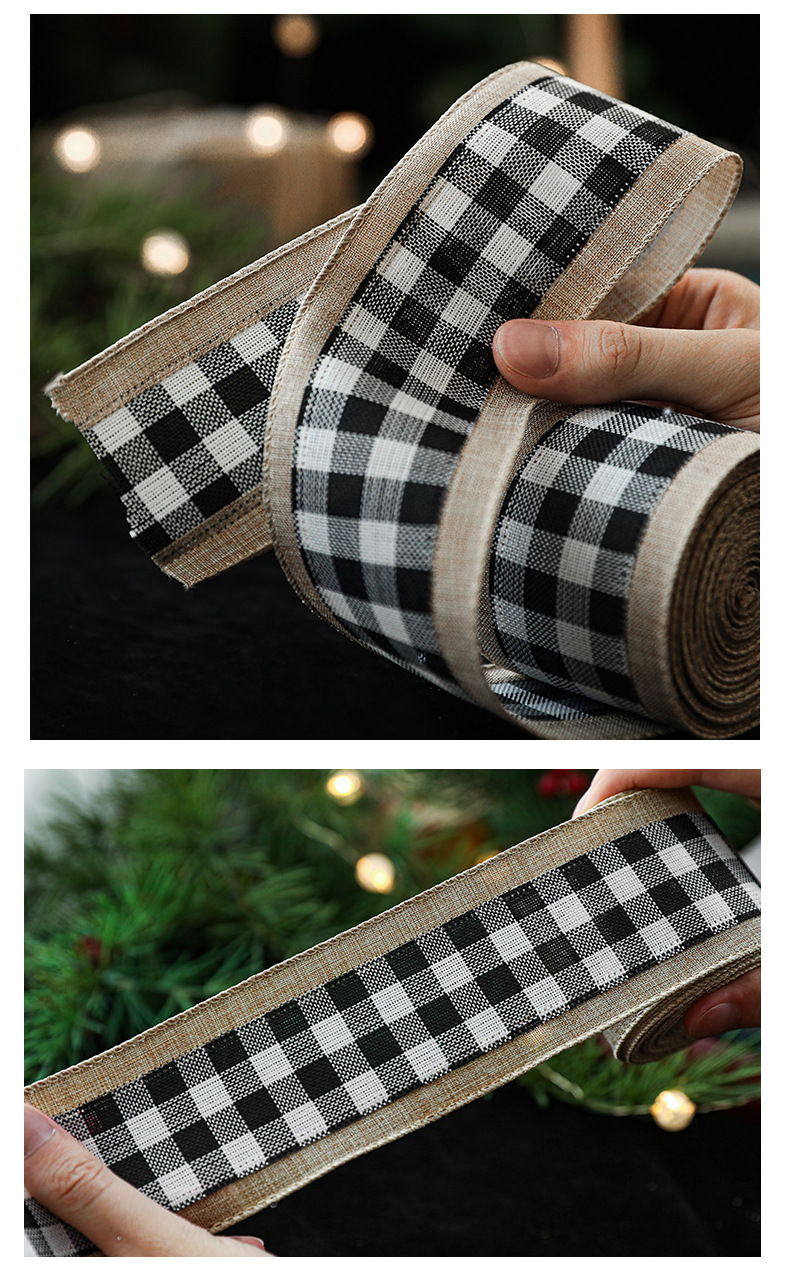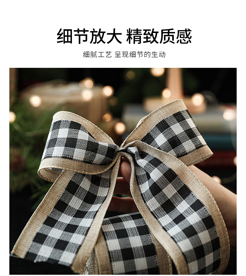 模造リネンクリスマス黒と白のチェック柄リボンギフト包装クリスマスリース弓装飾バインディング卸売
