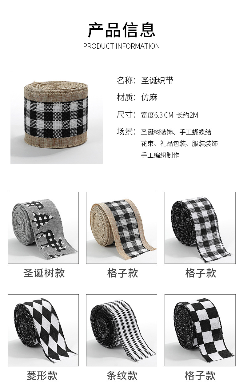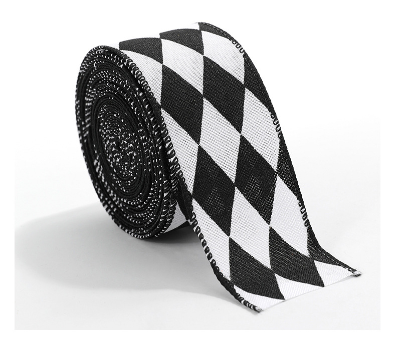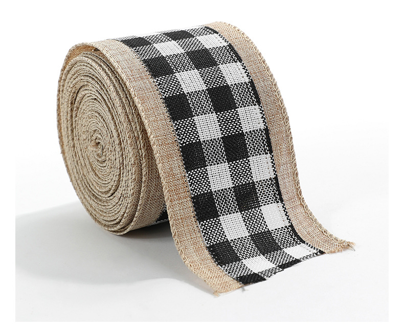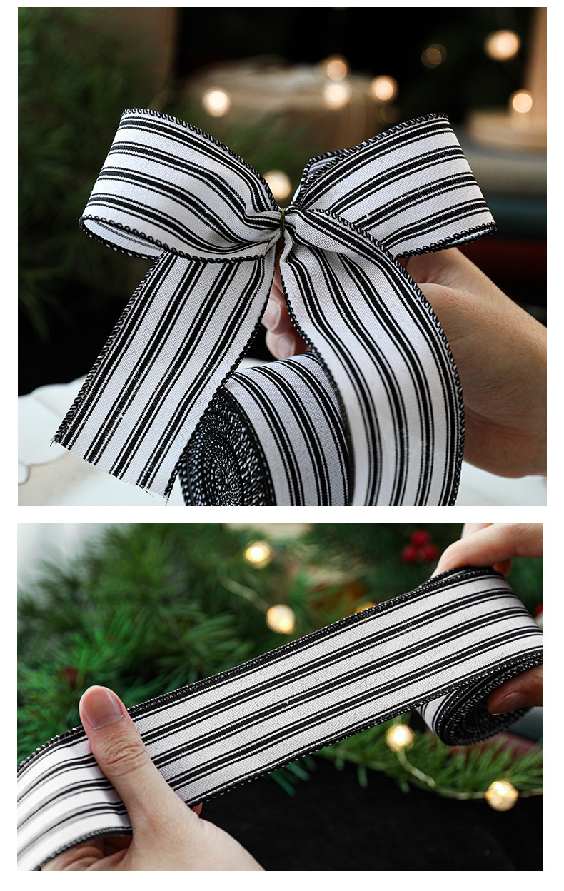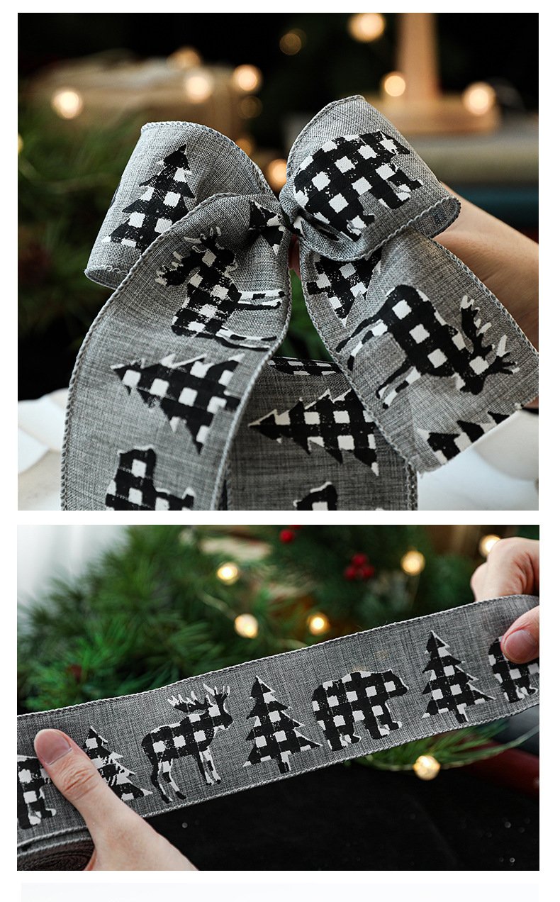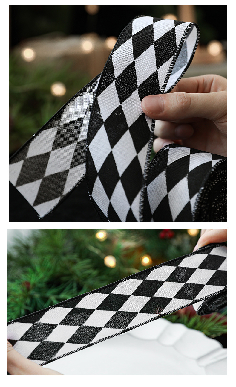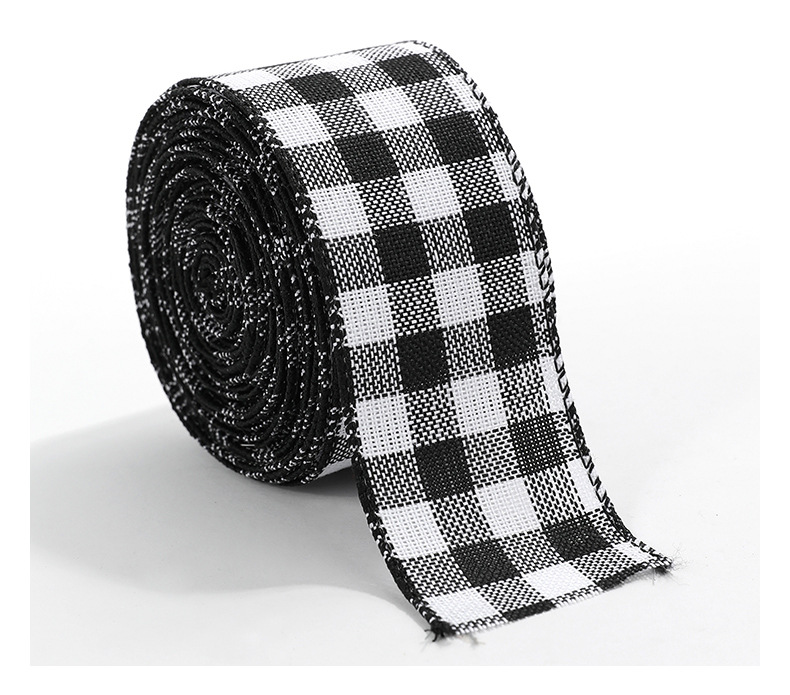 模造リネンクリスマス黒と白のチェック柄リボンギフト包装クリスマスリース弓装飾バインディング卸売